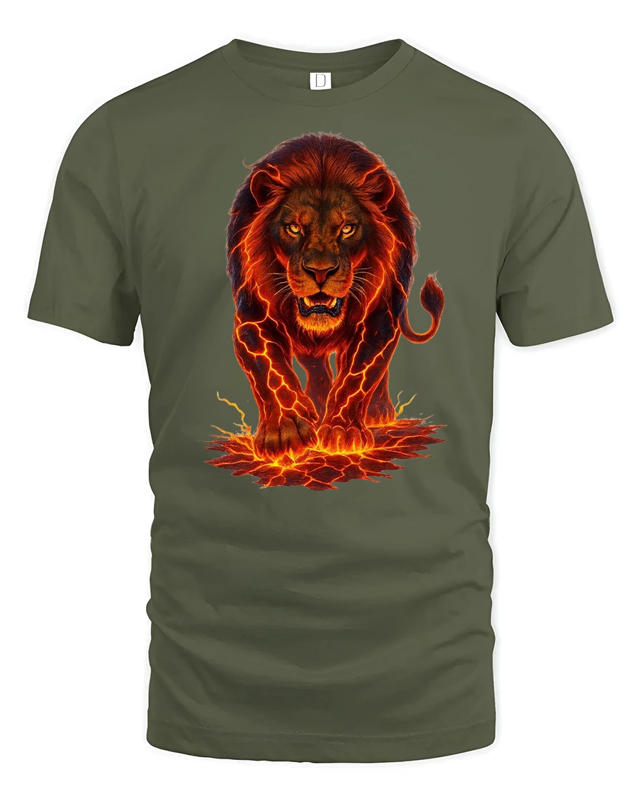 Fierce Lava Lion Graphic T-Shirt - military green t-shirt on white background
