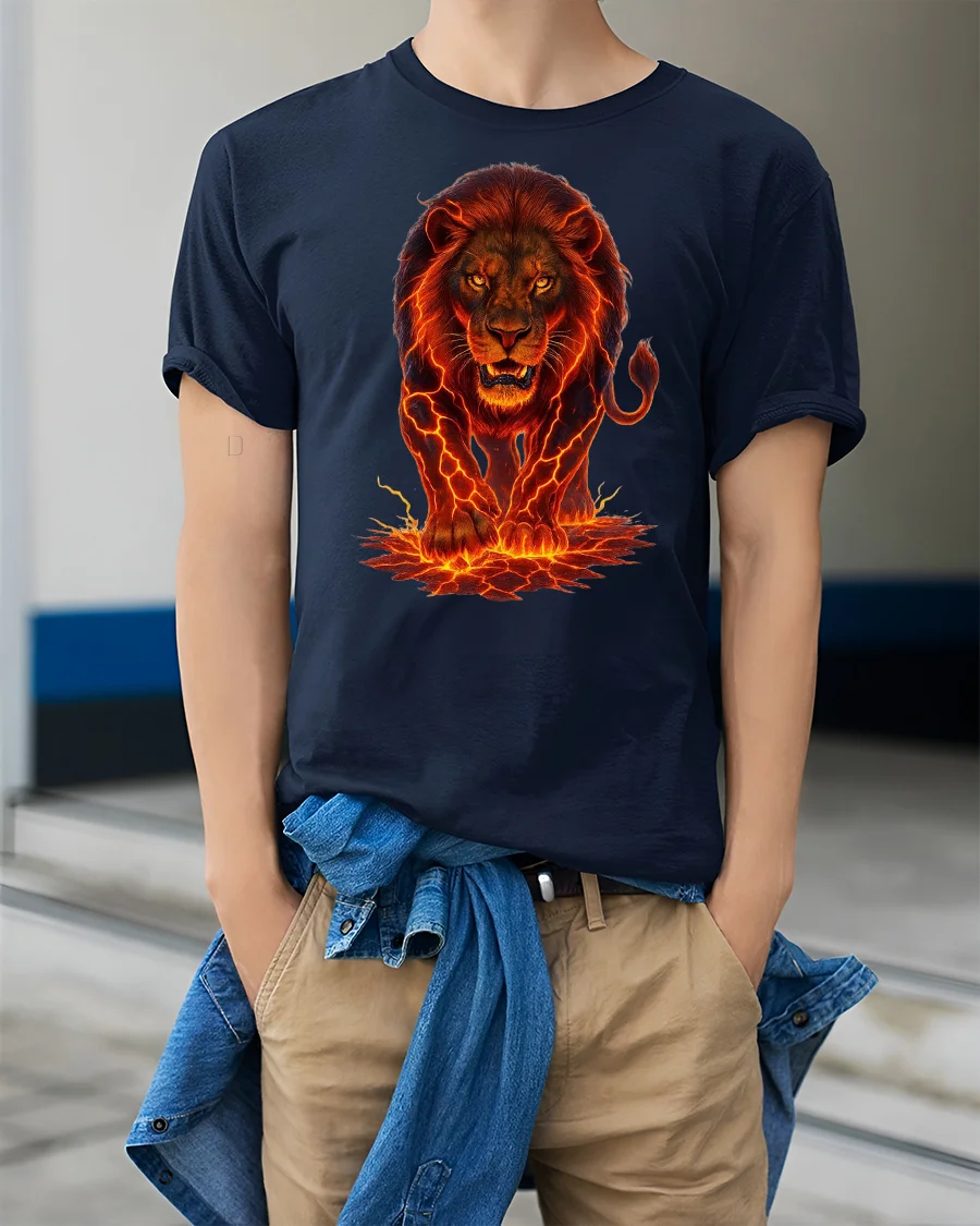 Unleash your inner strength with the Fierce Lava Lion Graphic Printed T-Shirt for Men. Featuring a roaring lion surrounded by molten lava flames, this bold design symbolizes power, courage, and unstoppable energy. Perfect for those who love standout fashion with a fearless vibe, this shirt is designed to turn heads everywhere you go.