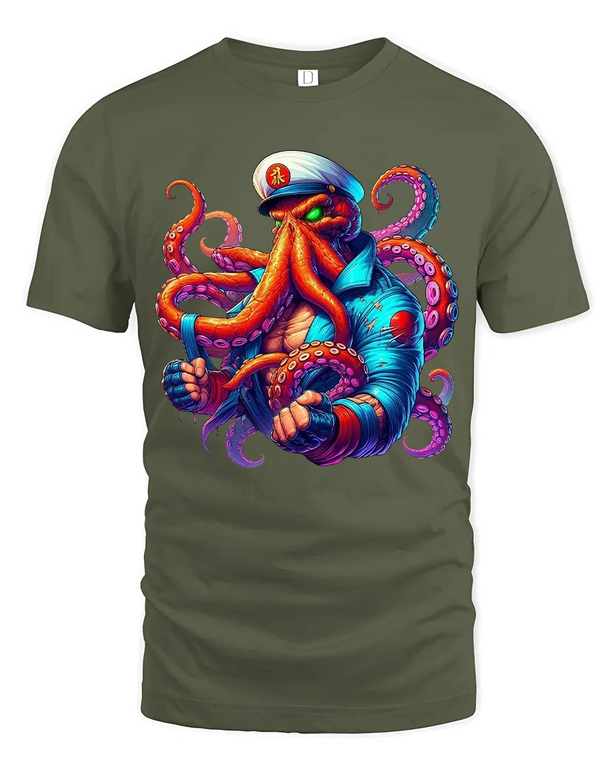 Fierce Octopus Captain Graphic Tshirt With Bold Nautical Power is designed to feel comfortable while showcasing high impact detailed artwork.