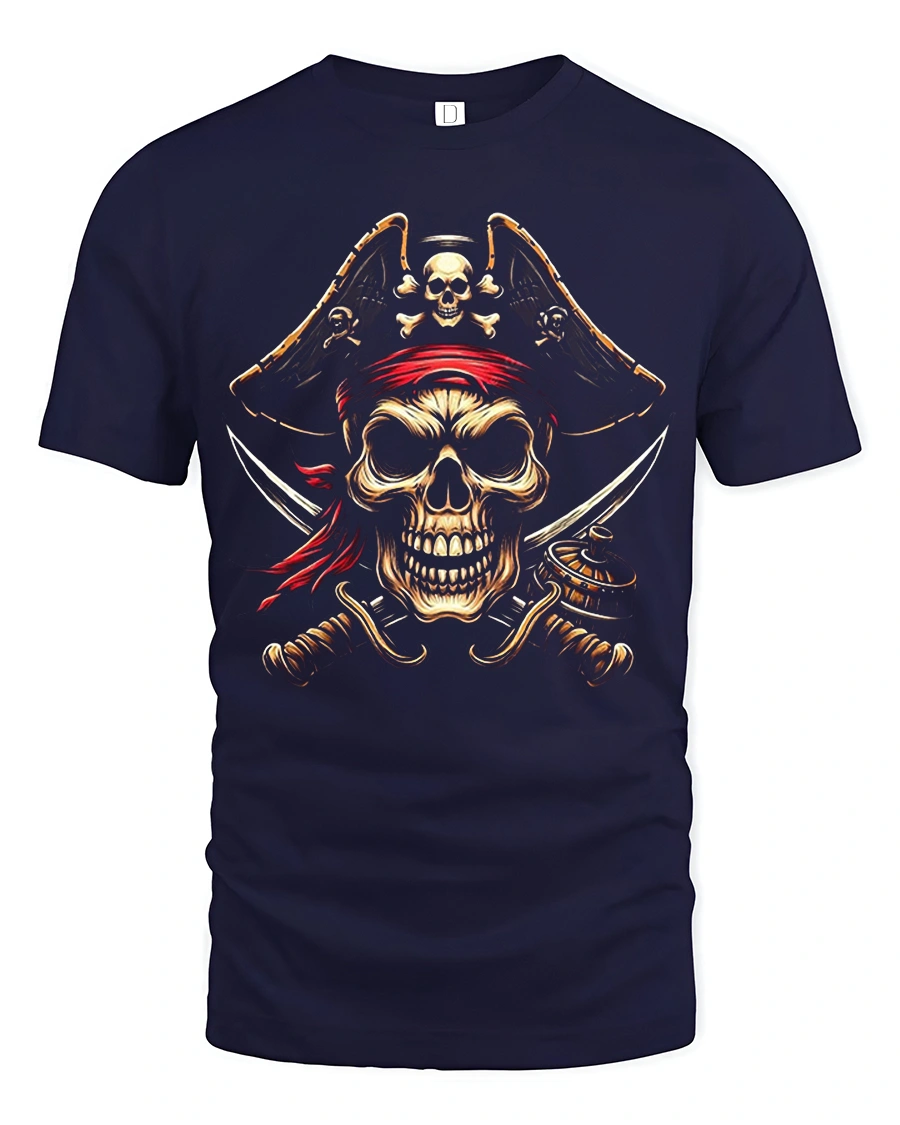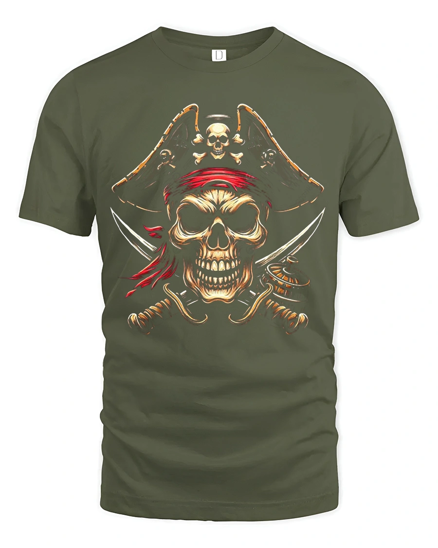 This Fierce Pirate Skull Crossed Swords Red Bandana Graphic Tee brings bold attitude and high-impact artwork to life with its intense pirate design. Featuring a menacing skull wearing a classic pirate hat and red bandana, the illustration includes crossed swords and intricate details that enhance the powerful and fearless look. The glowing highlights and rugged textures give the artwork a dynamic feel, making this tshirt perfect for anyone who loves strong, edgy designs inspired by pirate lore.