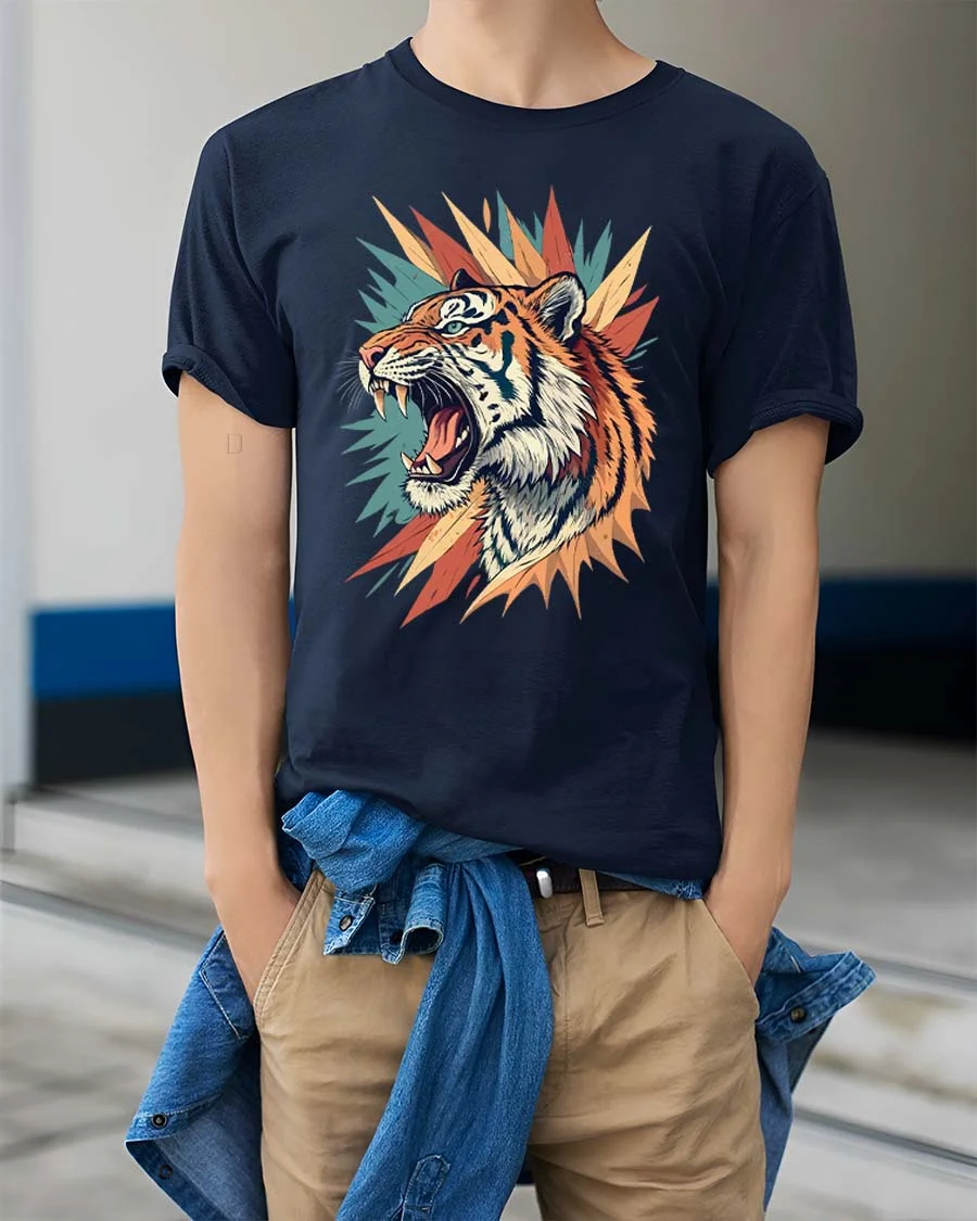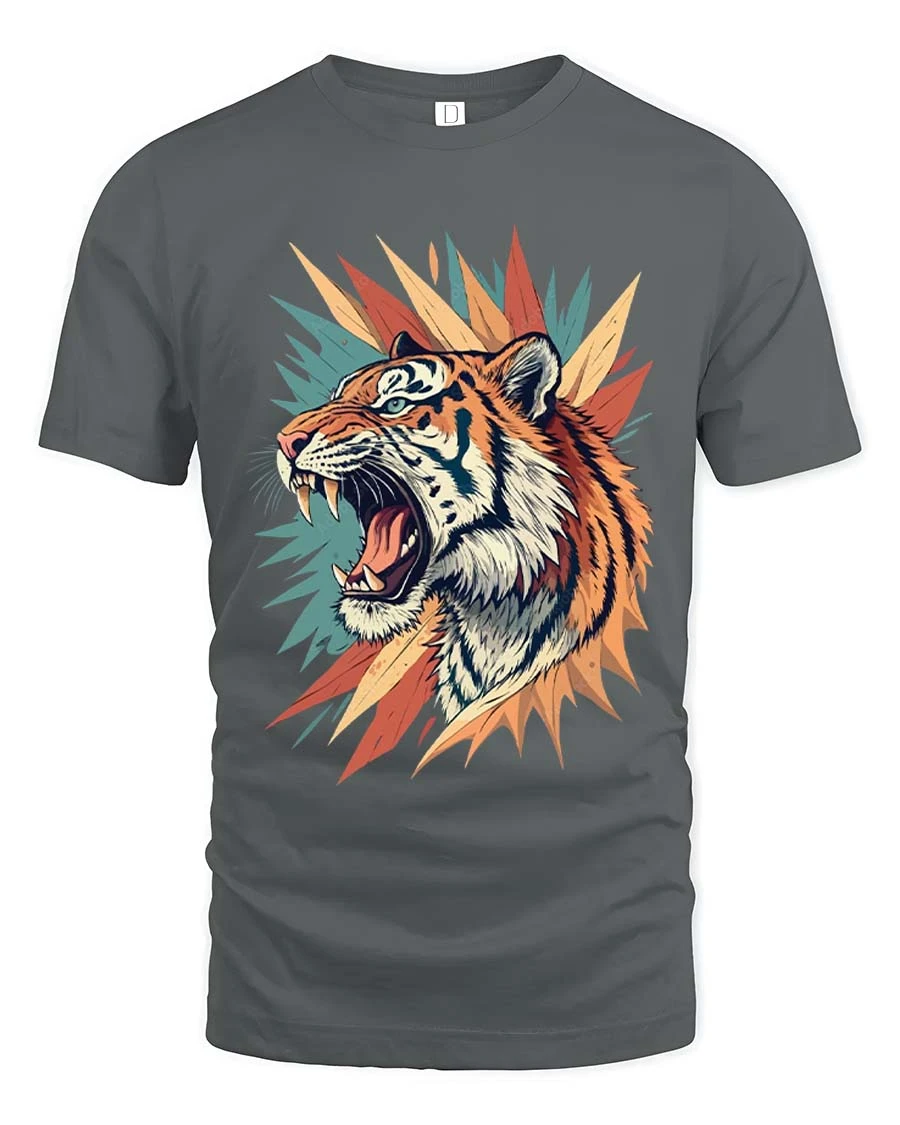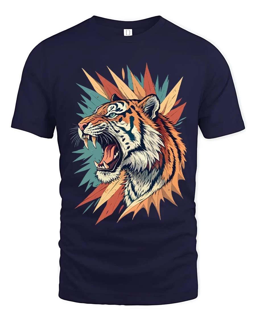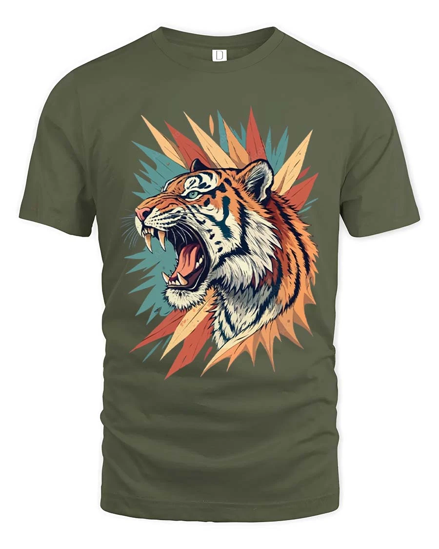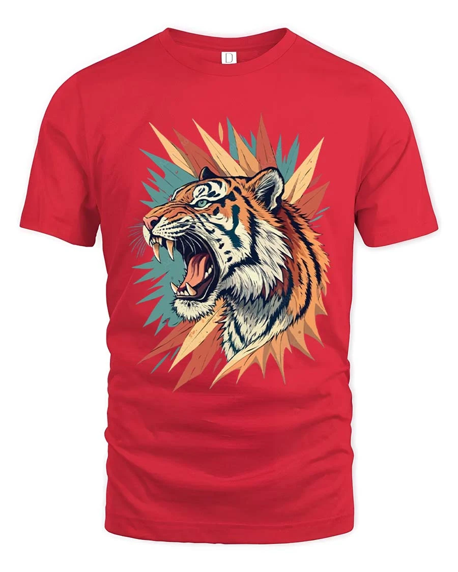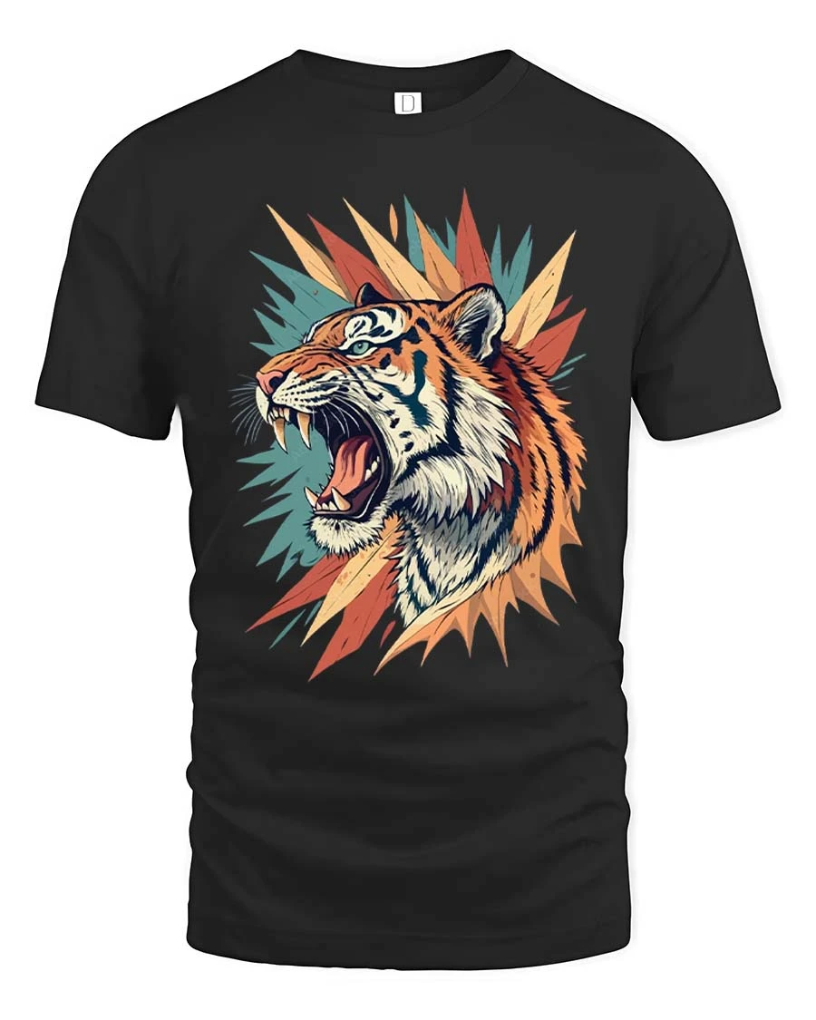 Fierce Roaring Tiger Graphic T Shirt Bold Wild Art Style Tee captures the raw power and intensity of a roaring tiger in a vibrant artistic design.