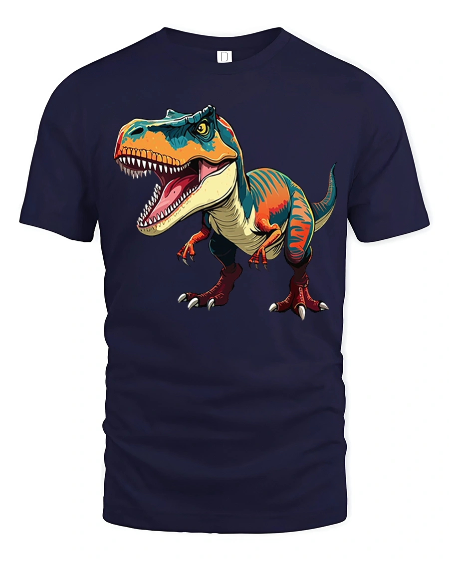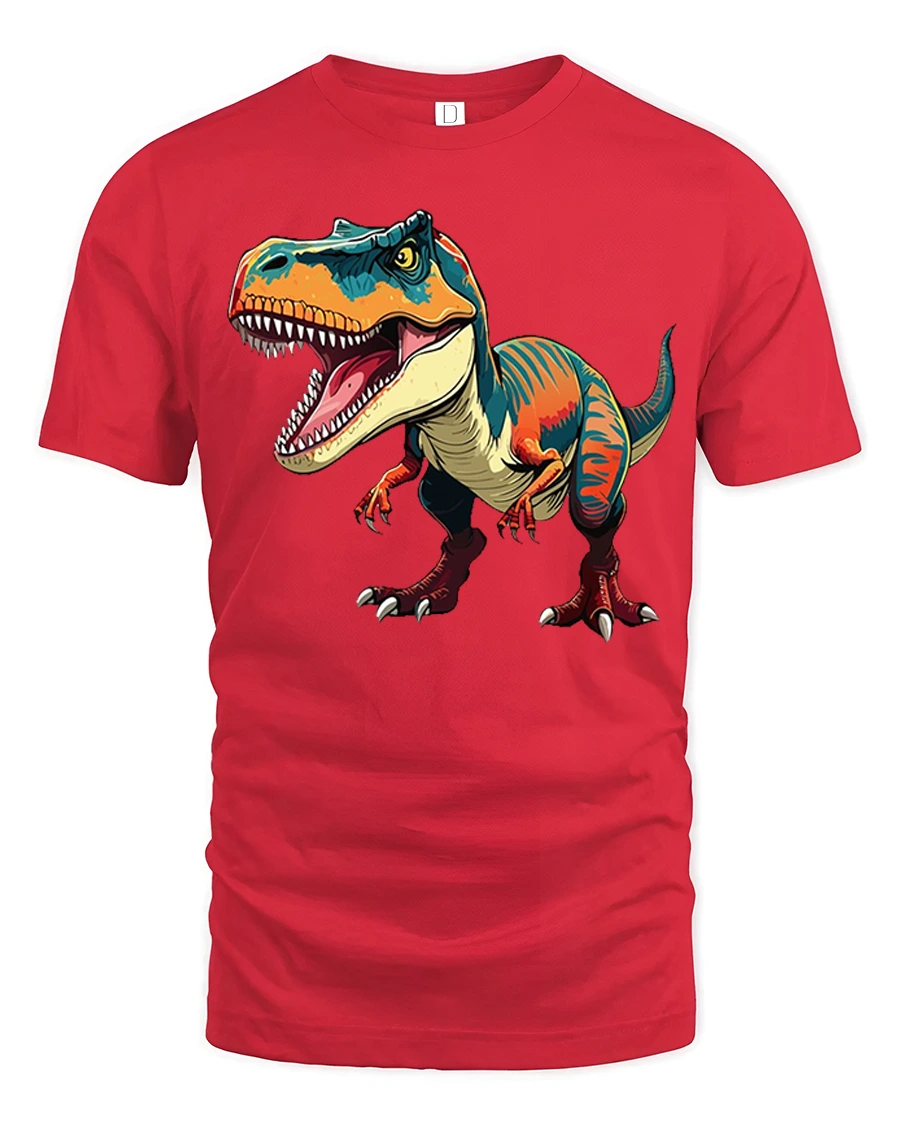 The Fierce T Rex Dinosaur Art Tee brings prehistoric power to life with a bold colorful and energetic design.