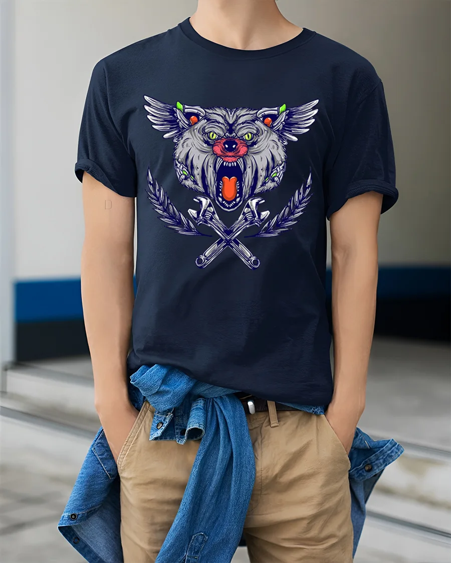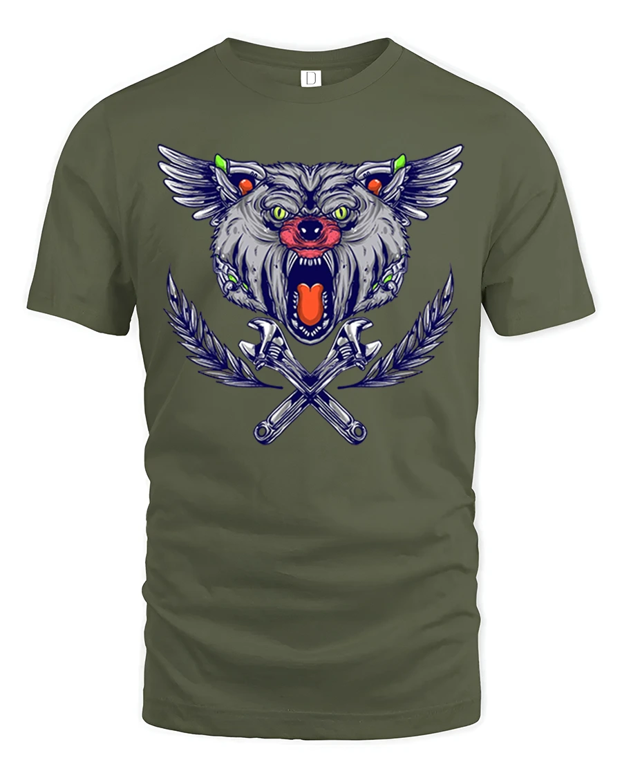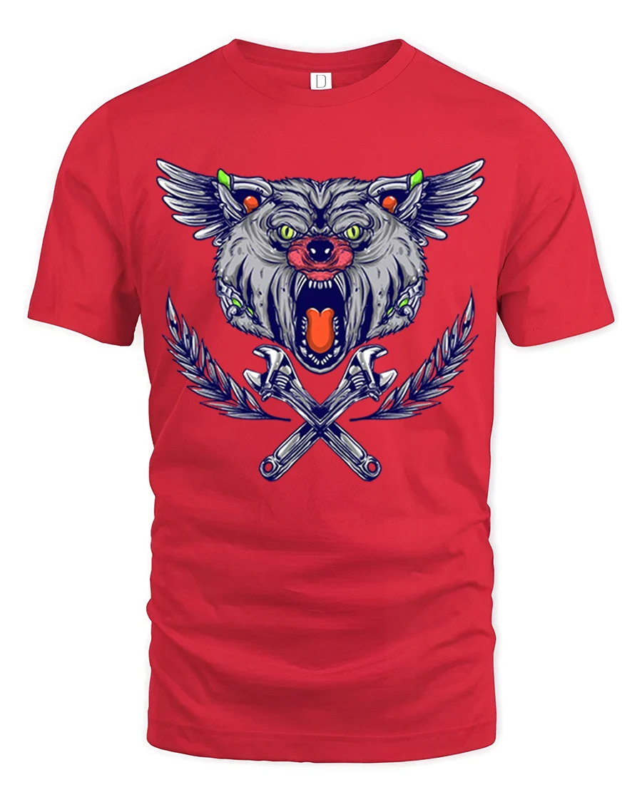 Crafted for comfort and everyday wear, this tshirt is great for garage sessions, motorcycle rides, car meets, or simply showing off your wild side. The combination of tribal wings and mechanical tools makes it an excellent gift for mechanics, engineers, and wolf lovers alike. Its bold aesthetic pairs easily with jeans, boots, or biker jackets and always draws attention.