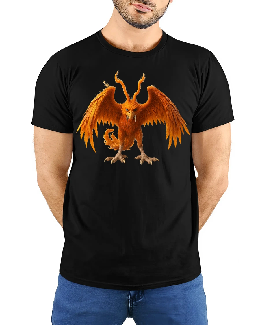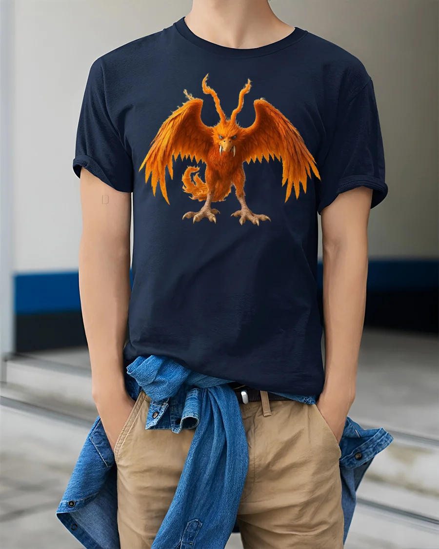 Fiery Mythical Phoenix Beast Fantasy Graphic Tee brings bold energy and dramatic fantasy style to your wardrobe. Featuring a fierce orange winged creature with blazing feathers, sharp talons, and a mythical stance, this tshirt is designed for fans of epic creatures, fantasy worlds, and powerful artwork. The fiery tones and detailed illustration make the design jump off the fabric, delivering an eye-catching look that stands out instantly.