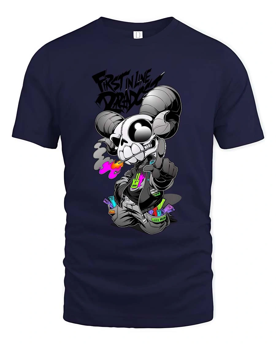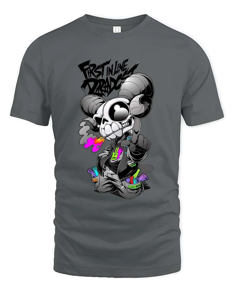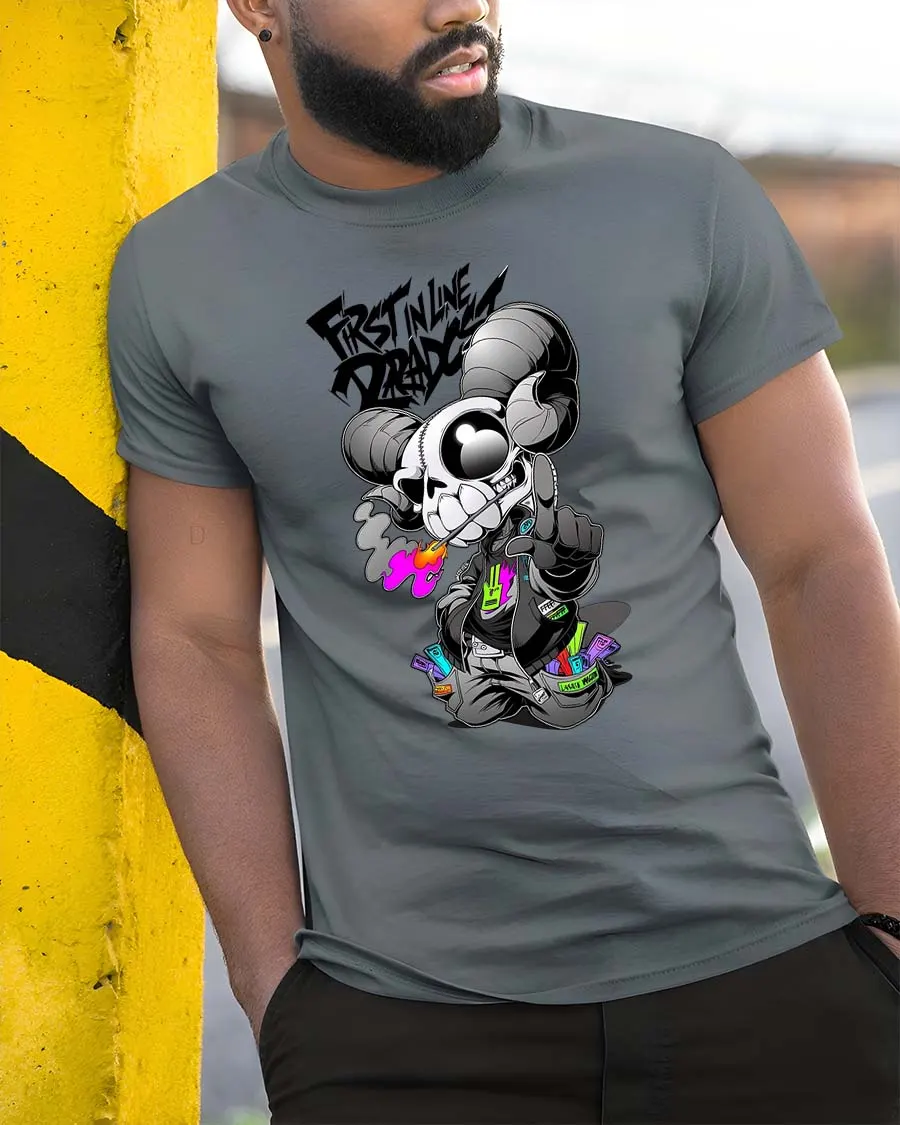 First In Line Dread Skull Ram Street Style tshirt Edge is perfect for those who embrace bold fashion and creative expression.
