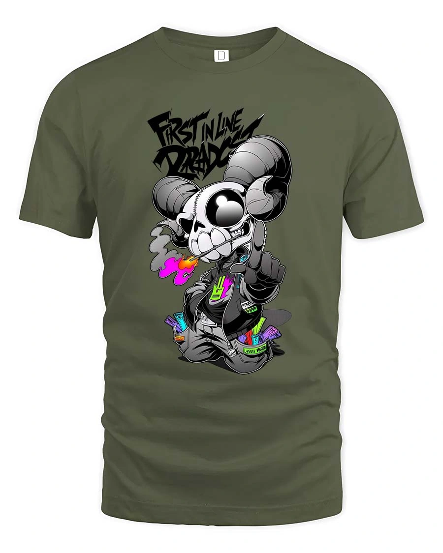 First In Line Dread Skull Ram Street Style tshirt Edge brings a fierce and bold attitude into modern streetwear fashion.