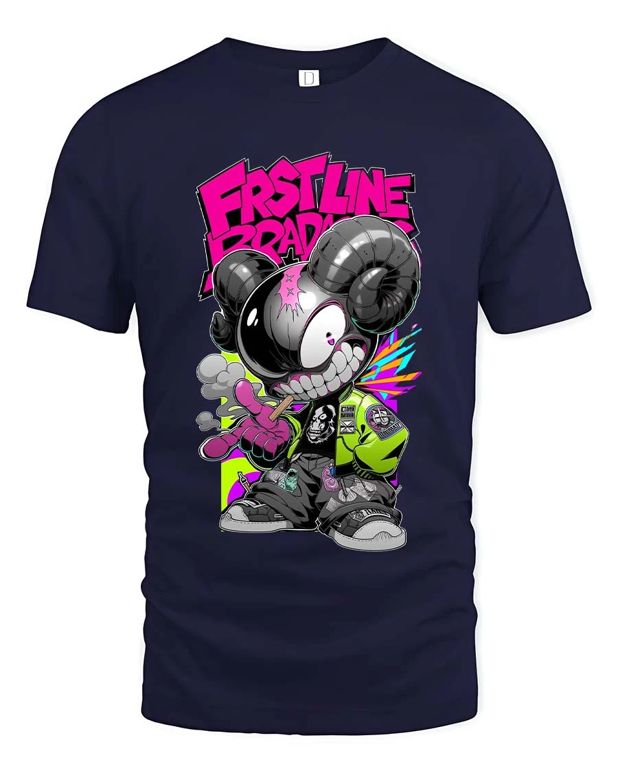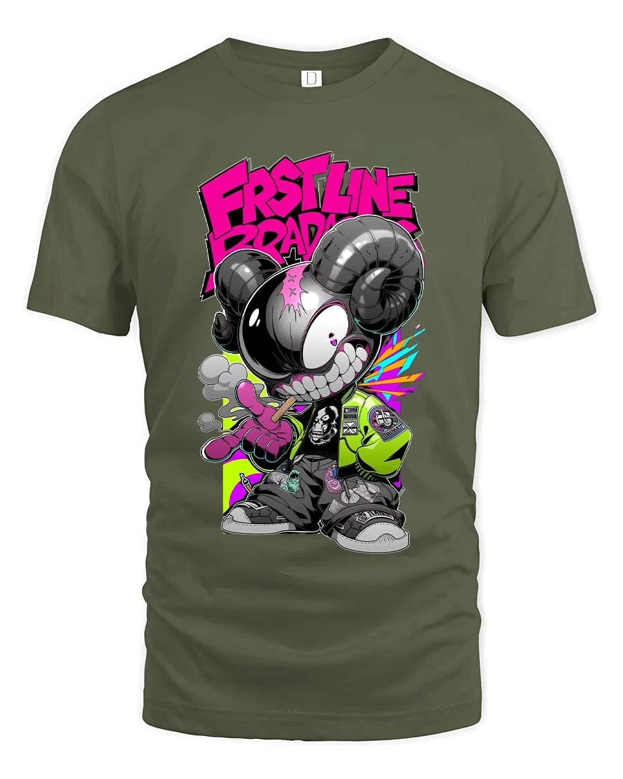 First Line Brave Neon Street Art Rebel Ram tshirt Vibes delivers a bold and energetic design that captures true street culture spirit.