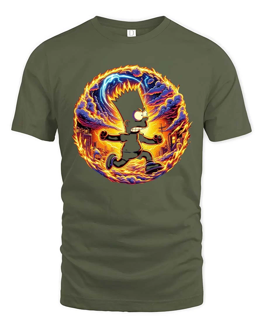 Perfect for fans of comic art, action cartoons, and urban graphic designs, this shirt stands out with its vibrant colors and powerful motion. Whether you love animated artwork, unique streetwear graphics, or bold fiery designs, this tee makes a strong statement wherever you go.