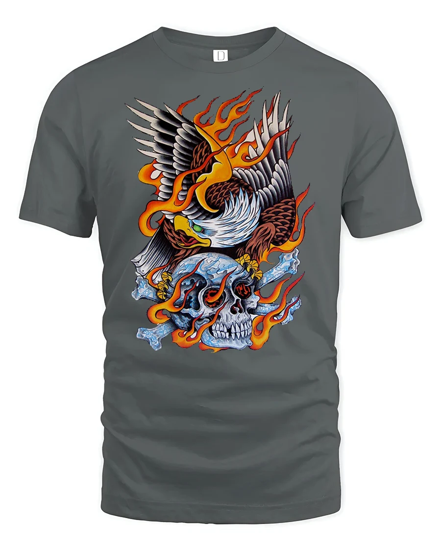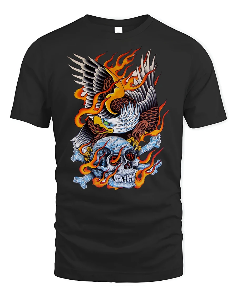 Made from soft, durable cotton, the Flaming Eagle Skull T-Shirt combines comfort with edge.