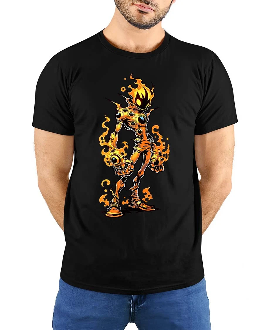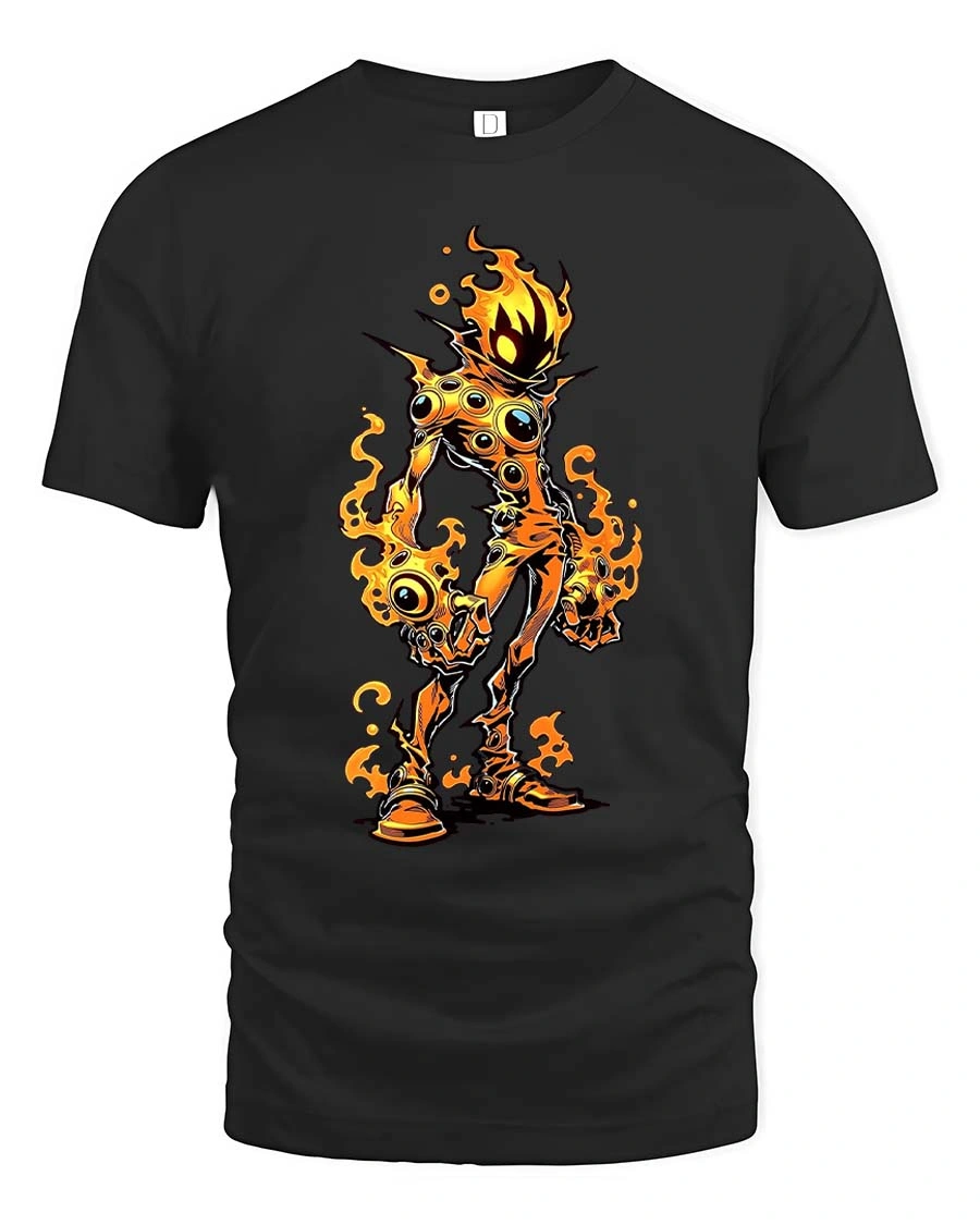 Flaming Monster T Shirt Creepy Fire Creature Graphic Tee delivers a fun mix of spooky and playful style.