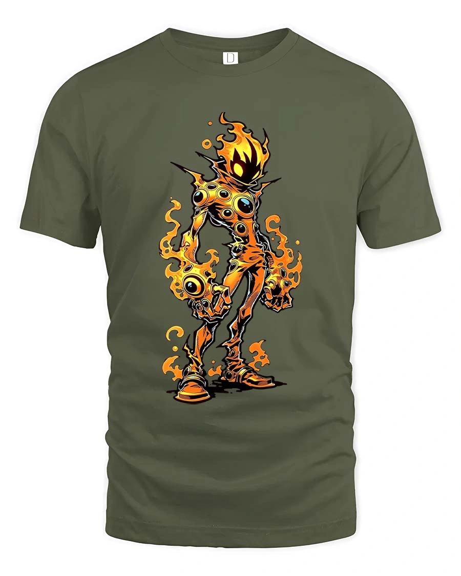 Flaming Monster T Shirt Creepy Fire Creature Graphic Tee - military green t-shirt on white background