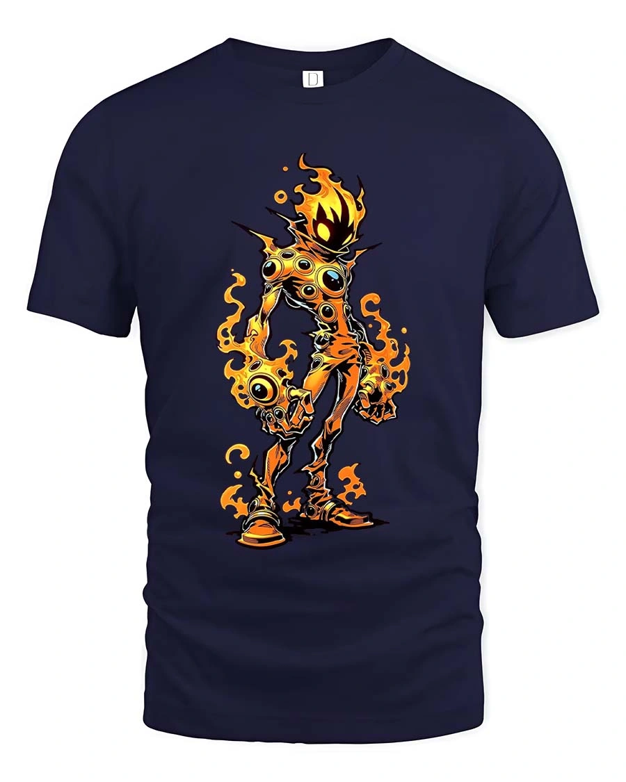 Flaming Monster T Shirt Creepy Fire Creature Graphic Tee - navy t-shirt on white background