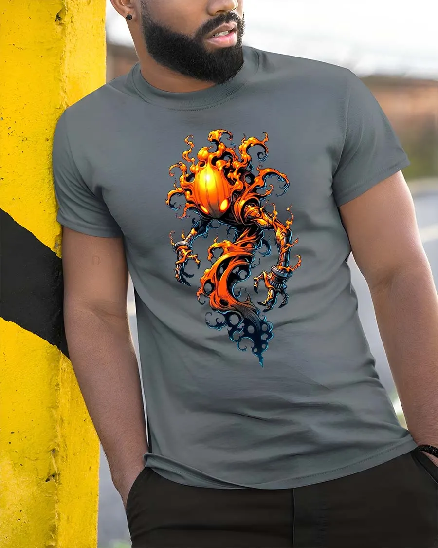 Flaming Pumpkin Spirit Dark Fantasy Graphic T Shirt brings a bold and mysterious energy with its fiery supernatural design.