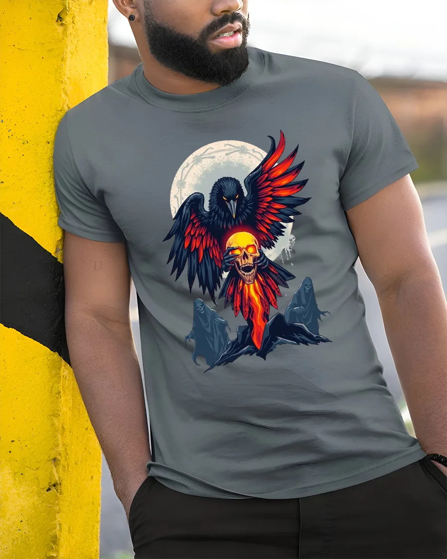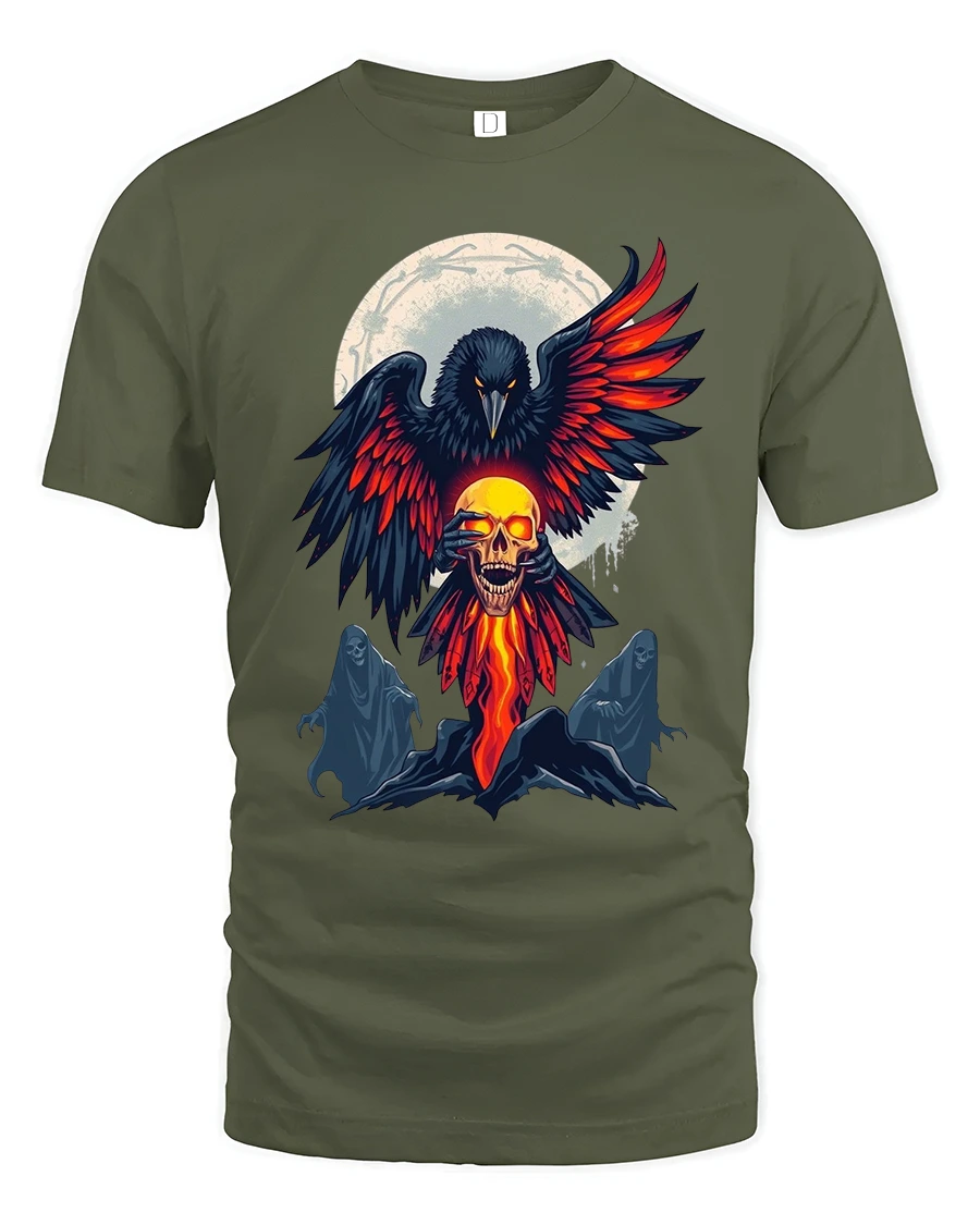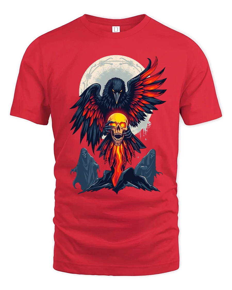 Whether you’re heading to concerts, festivals, Halloween events, or simply showcasing your alternative style, this tee delivers an unforgettable look. Its high-quality print captures the flames, shadows, and ghostly spirits with impressive clarity, giving you a shirt that feels as expressive and thrilling as the artwork itself. It also makes a unique gift for anyone who loves ravens, skulls, dark mythologies, or edgy streetwear fashion.