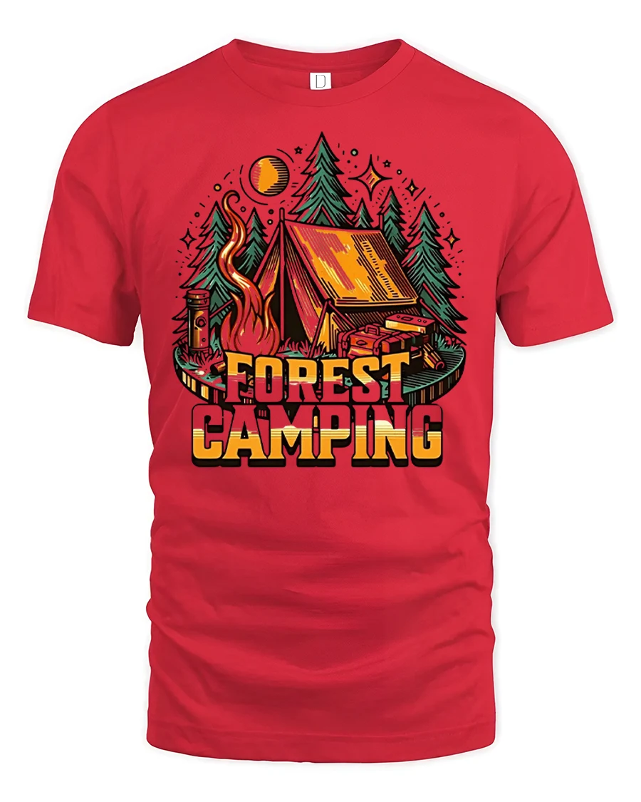 Forest Camping Adventure Graphic Tee With Rustic Outdoor Style - red t-shirt on white background