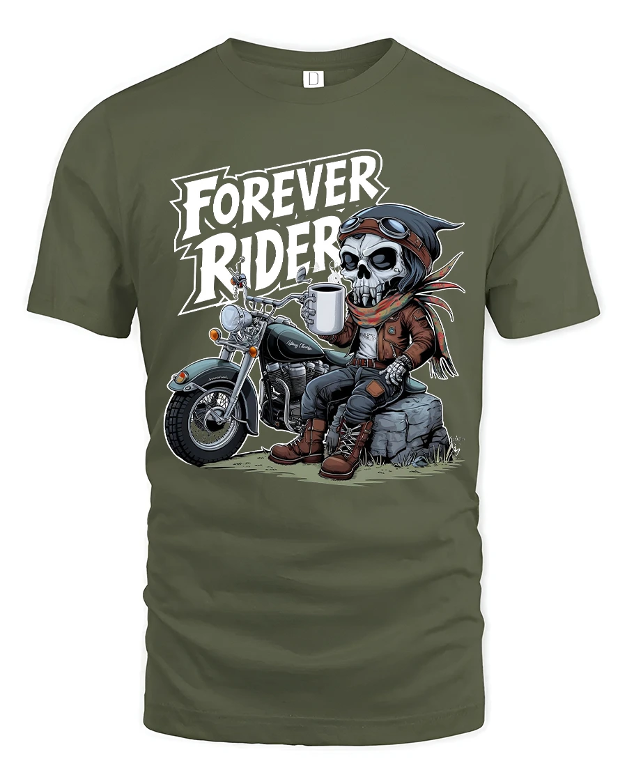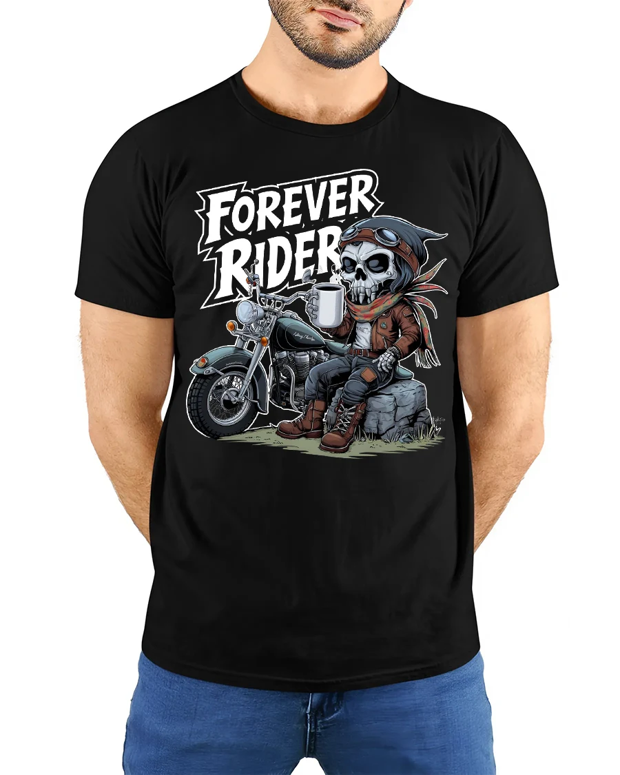 The Forever Rider Skeleton Biker Graphic T Shirt Road Life captures the true spirit of freedom adventure and endless roads.