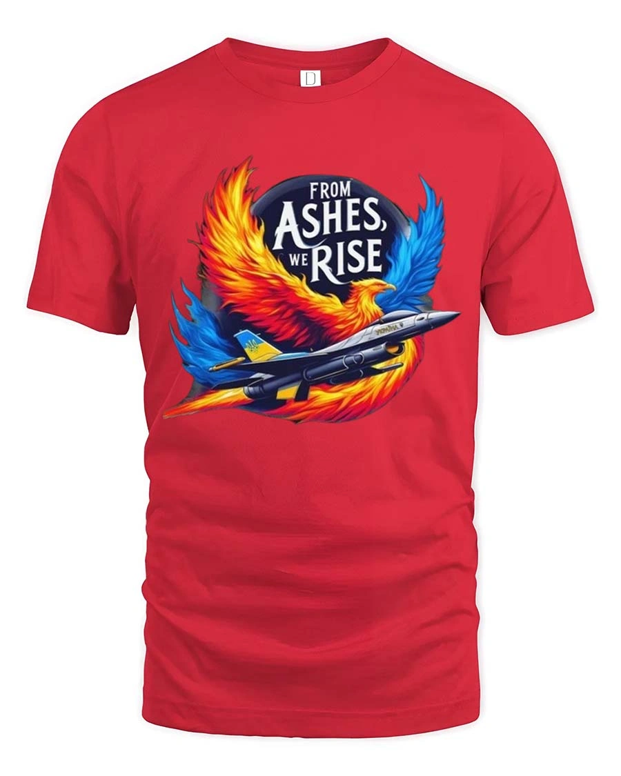 From Ashes We Rise Phoenix Jet T Shirt Bold Fighter Spirit Art - red t-shirt on white background