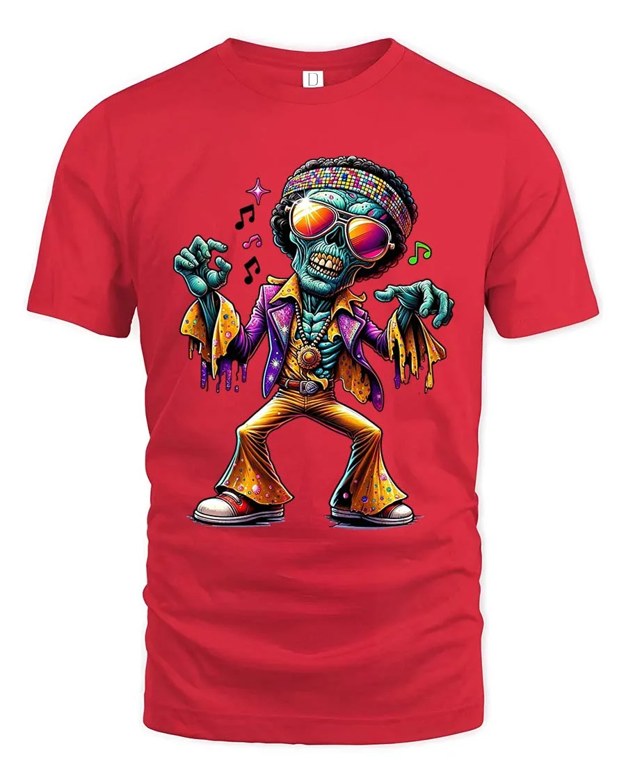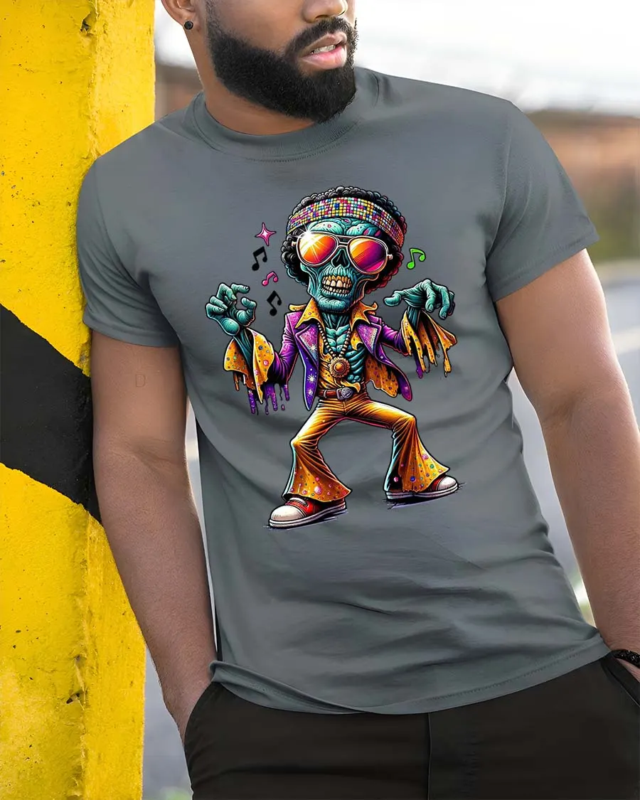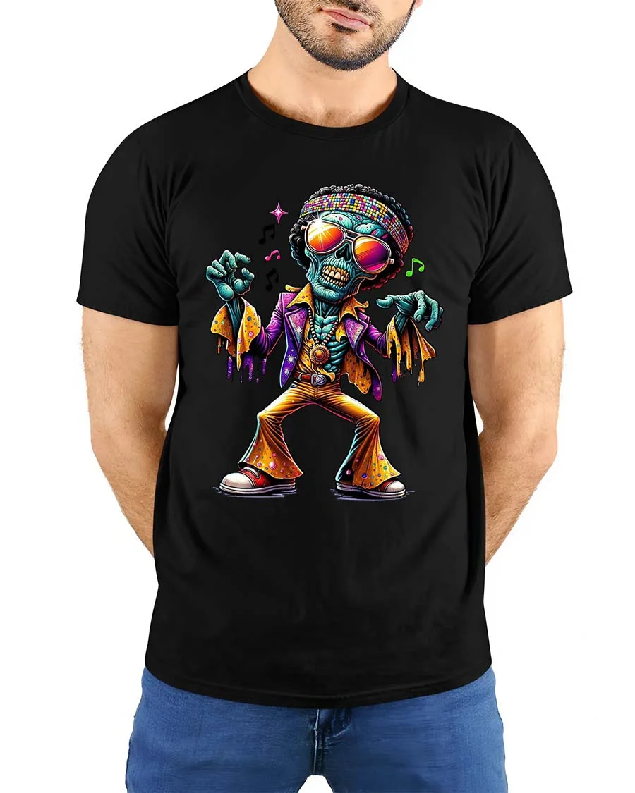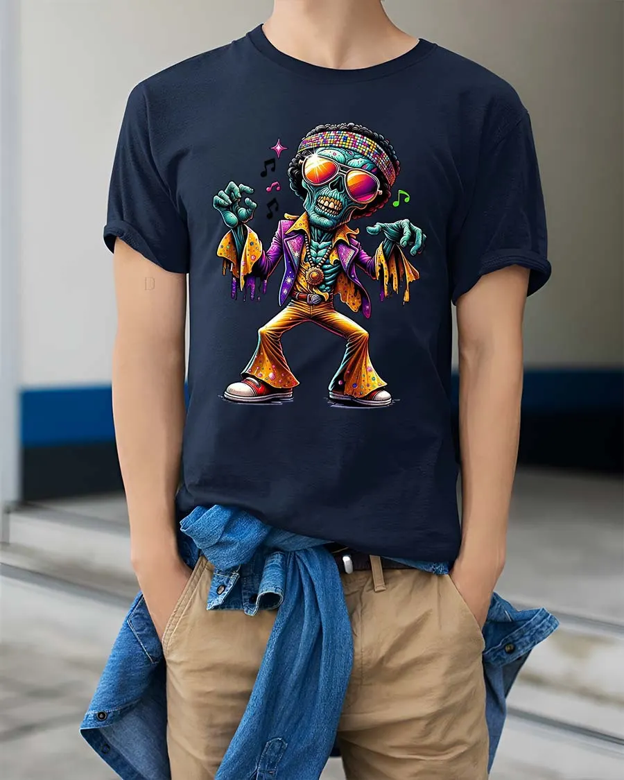 Funky Dancing Skeleton T Shirt Retro Disco Zombie Graphic Tee brings vibrant energy and retro vibes into one eye catching design.