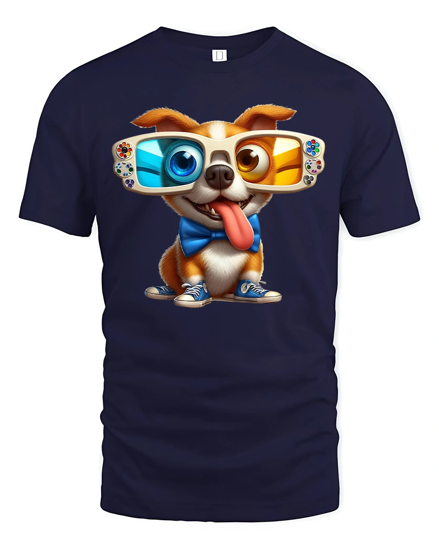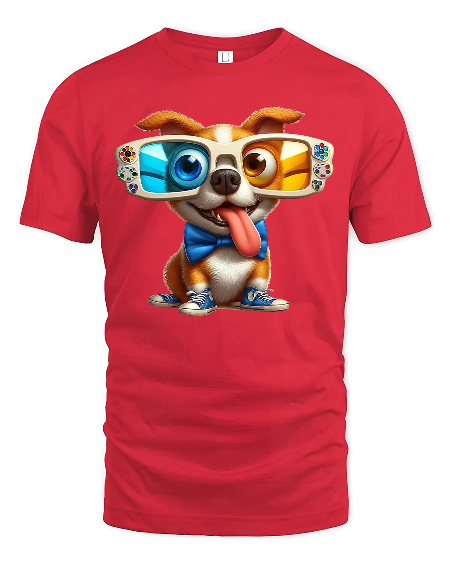 Funny 3D Glasses Dog Tee – Cool Gamer Pup T-Shirt is made for anyone who loves dogs with personality and humor. Featuring a cheerful pup wearing oversized 3D glasses, a blue bow tie, and matching sneakers, this tee adds instant fun to your everyday style. It’s bright, playful, and full of charm — just like your favorite furry friend.