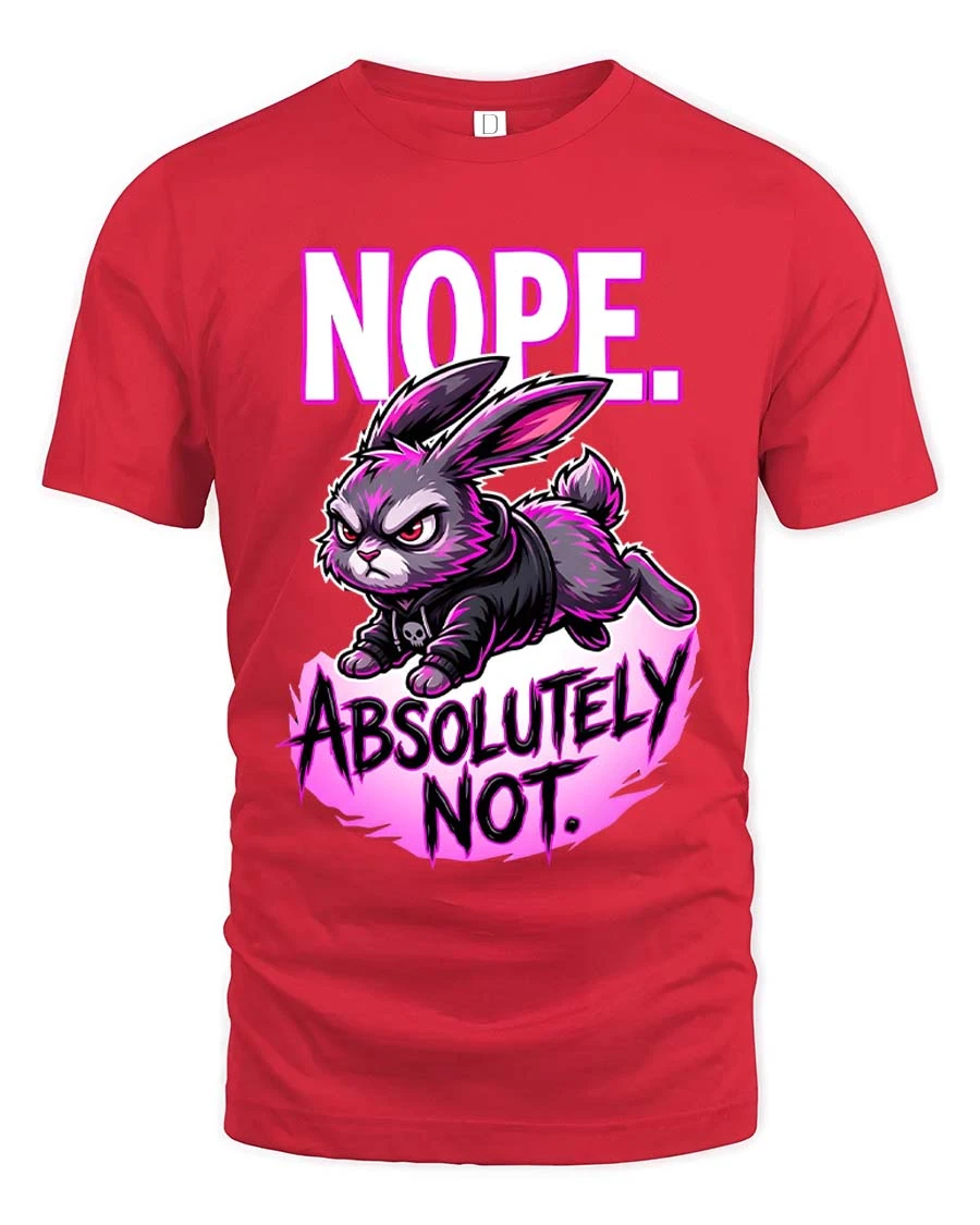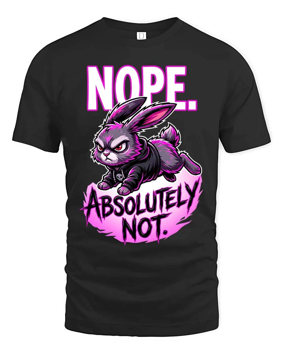 Funny Angry Bunny Nope Absolutely Not T Shirt Attitude Tee delivers bold humor with a playful yet edgy twist.