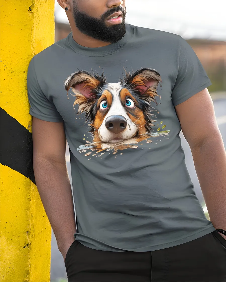Show off your love for dogs with the Funny Australian Shepherd Dog Tee with Cute Print. Featuring a playful and wide-eyed Aussie Shepherd with a realistic yet cartoonish touch, this tee is perfect for dog moms, dog dads, and anyone who can’t resist the charm of man’s best friend. The detailed design captures the unique personality and spirit of the beloved breed in a fun and eye-catching way.