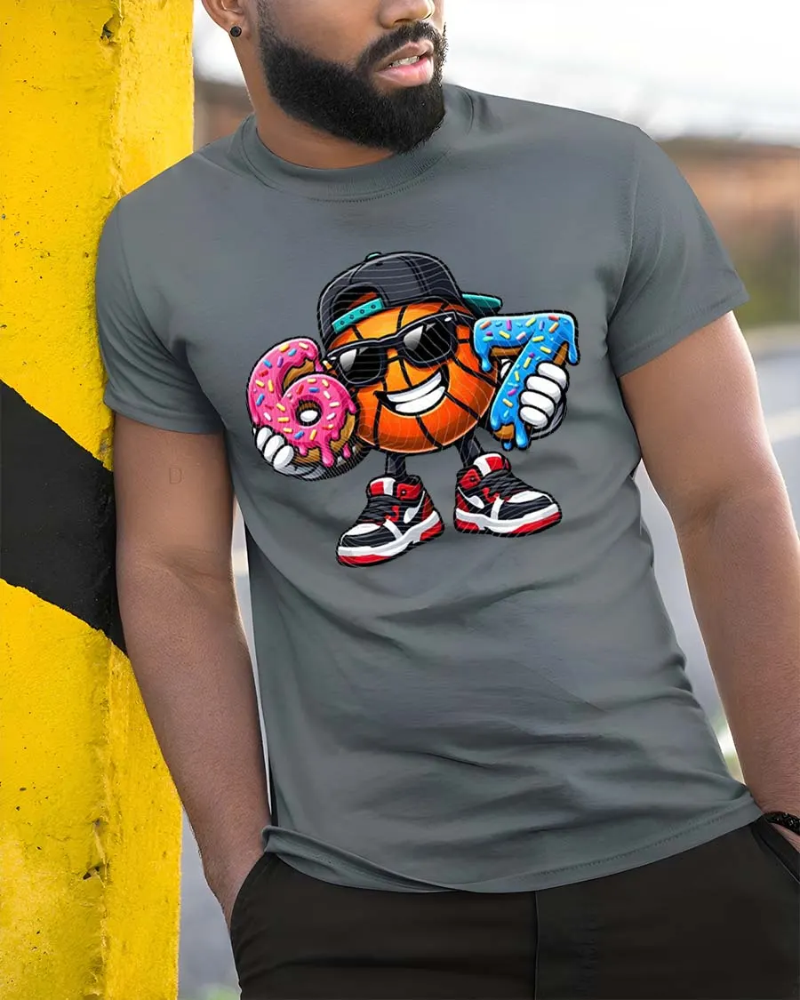 Funny Basketball Donut Lover Street Style Graphic Tshirt brings together sports energy and sweet humor in one playful design.
