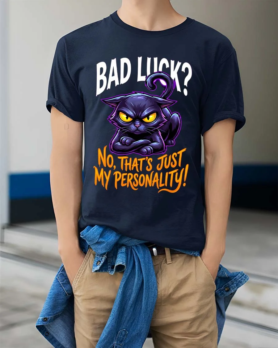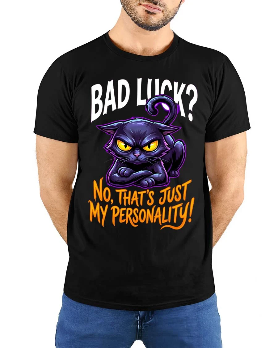 Funny Black Cat Bad Luck T Shirt Sarcastic Personality Tee brings humor and attitude together in one bold design.