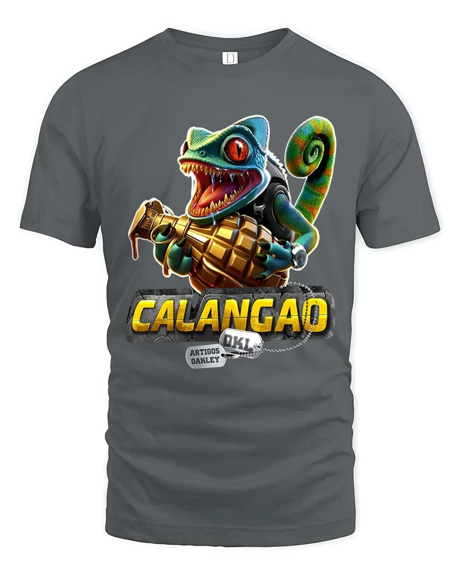 The graphic features a wild chameleon holding a grenade with an expressive and mischievous look, combining playful cartoon style with edgy attitude.