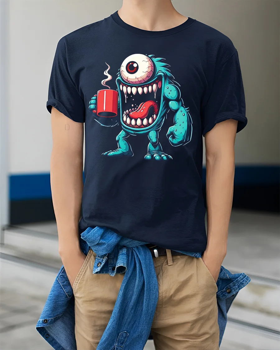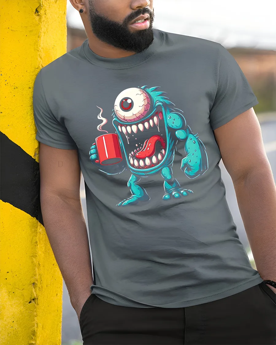Wearing the Funny Coffee Monster One Eyed Morning Chaos Cartoon Tee adds humor and personality to your casual outfits. The energetic creature and vibrant artwork make it a great option for coffee lovers, cartoon fans, or anyone who enjoys wearing pieces that stand out. Its fun design makes it perfect for relaxing weekends, hanging out with friends, or gifting to someone with a great sense of humor.