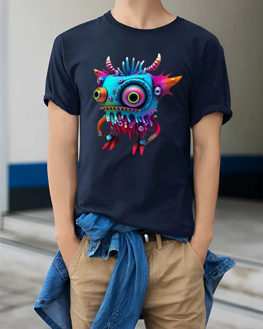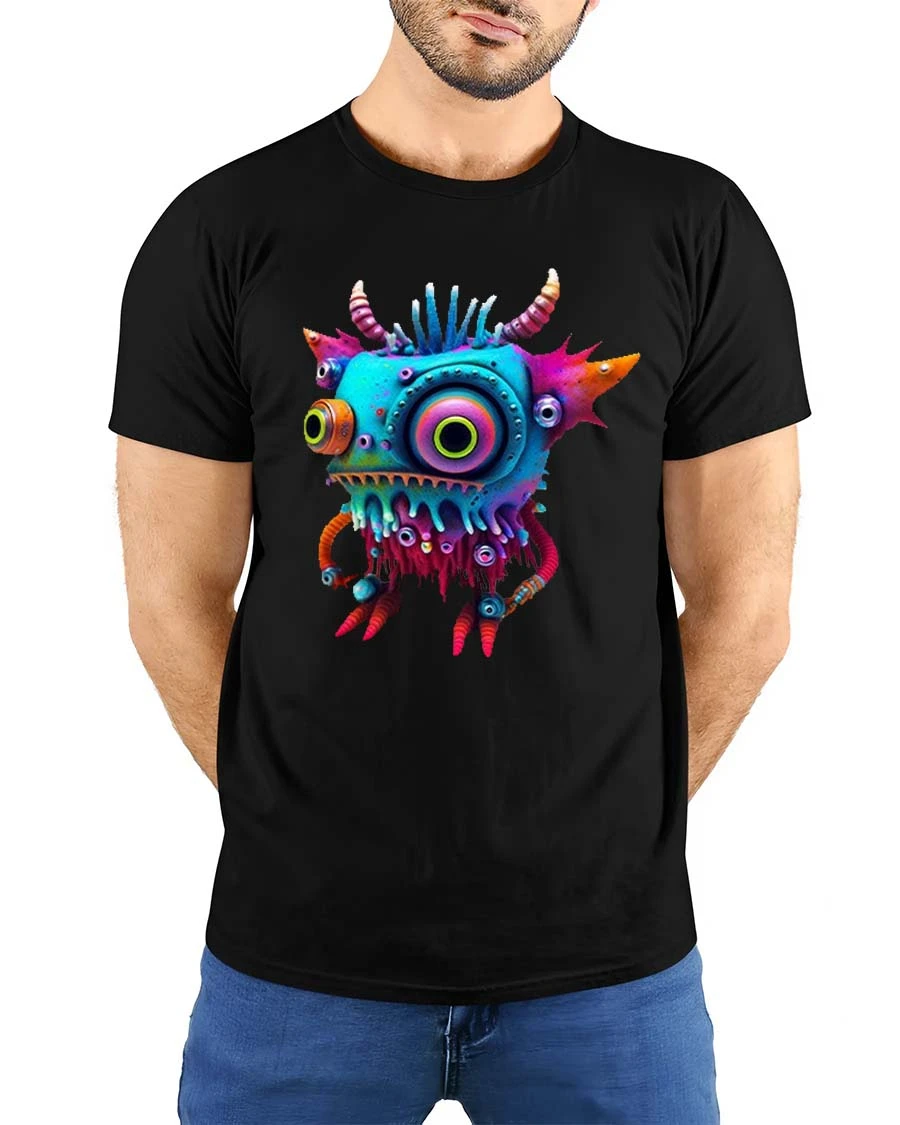 Featuring a quirky monster with vibrant colors, big expressive eyes, and fun details, this graphic tee captures a lighthearted and imaginative vibe that stands out instantly.
