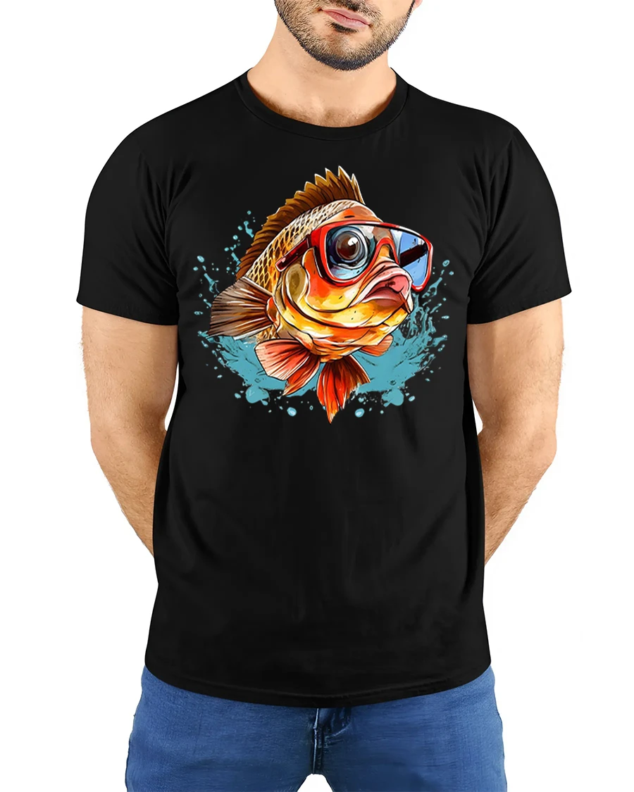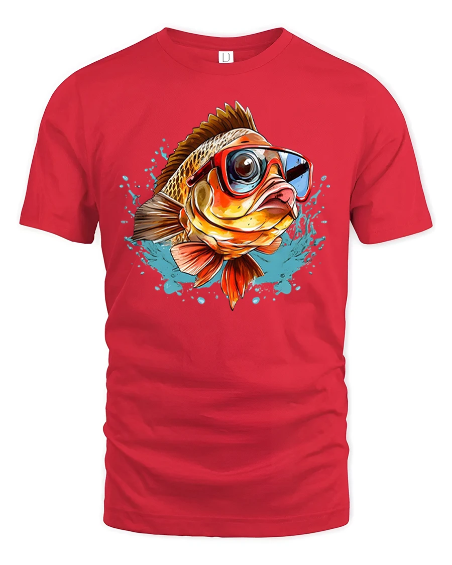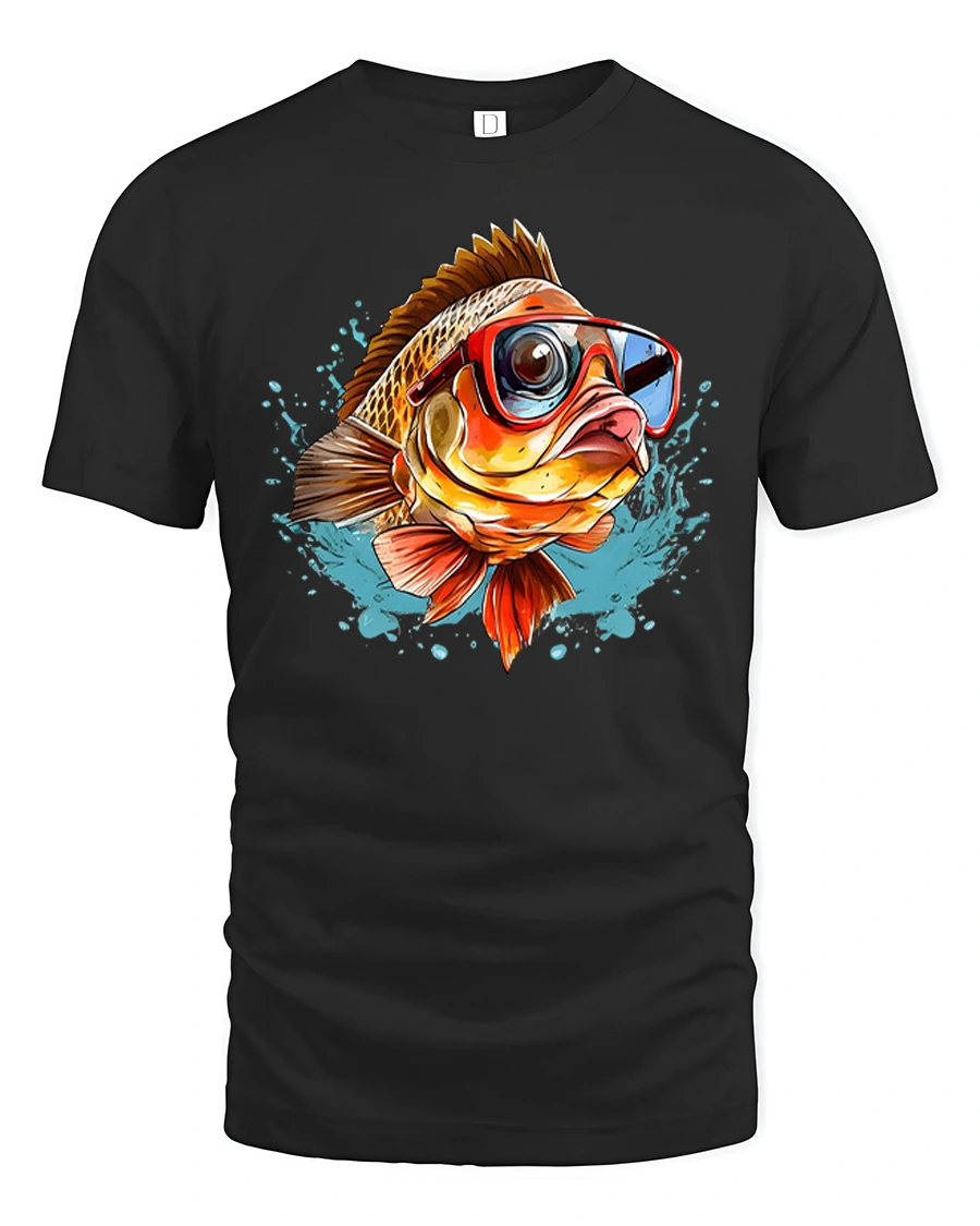 This funny cool fish wearing sunglasses splash art graphic tshirt features a playful fish rocking bold sunglasses surrounded by energetic water splashes and bright artistic details.