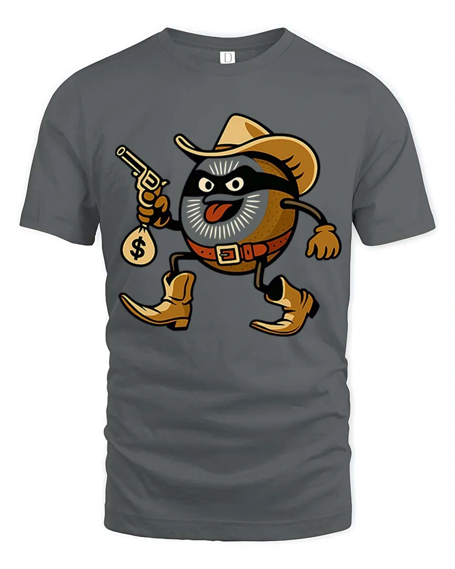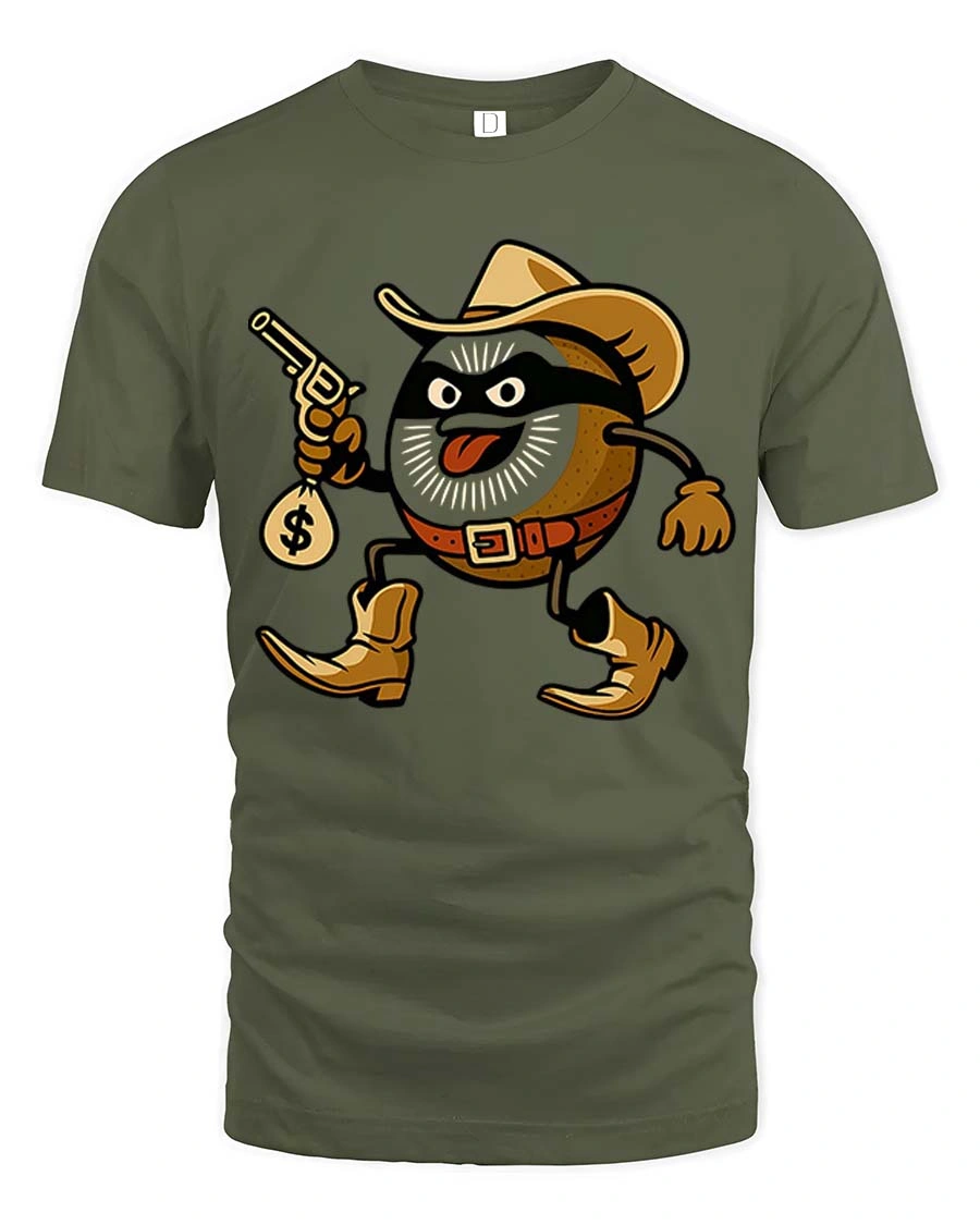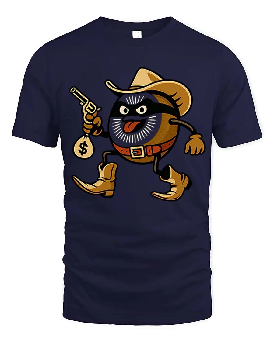 Funny Cowboy Cookie Bandit Cartoon Wild West Graphic T Shirt brings humor and western charm together in a playful design.