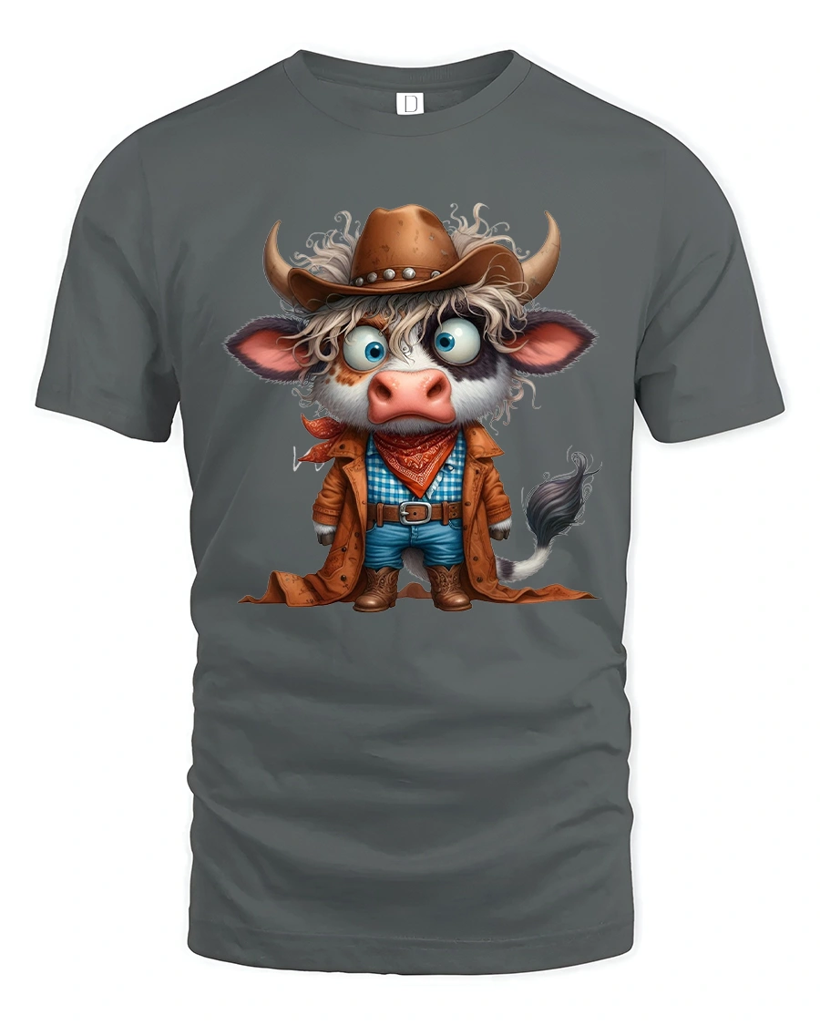 The Funny Cowboy Cow Cartoon Western Character Art Graphic T Shirt brings humor charm and western flair together in one delightful design.