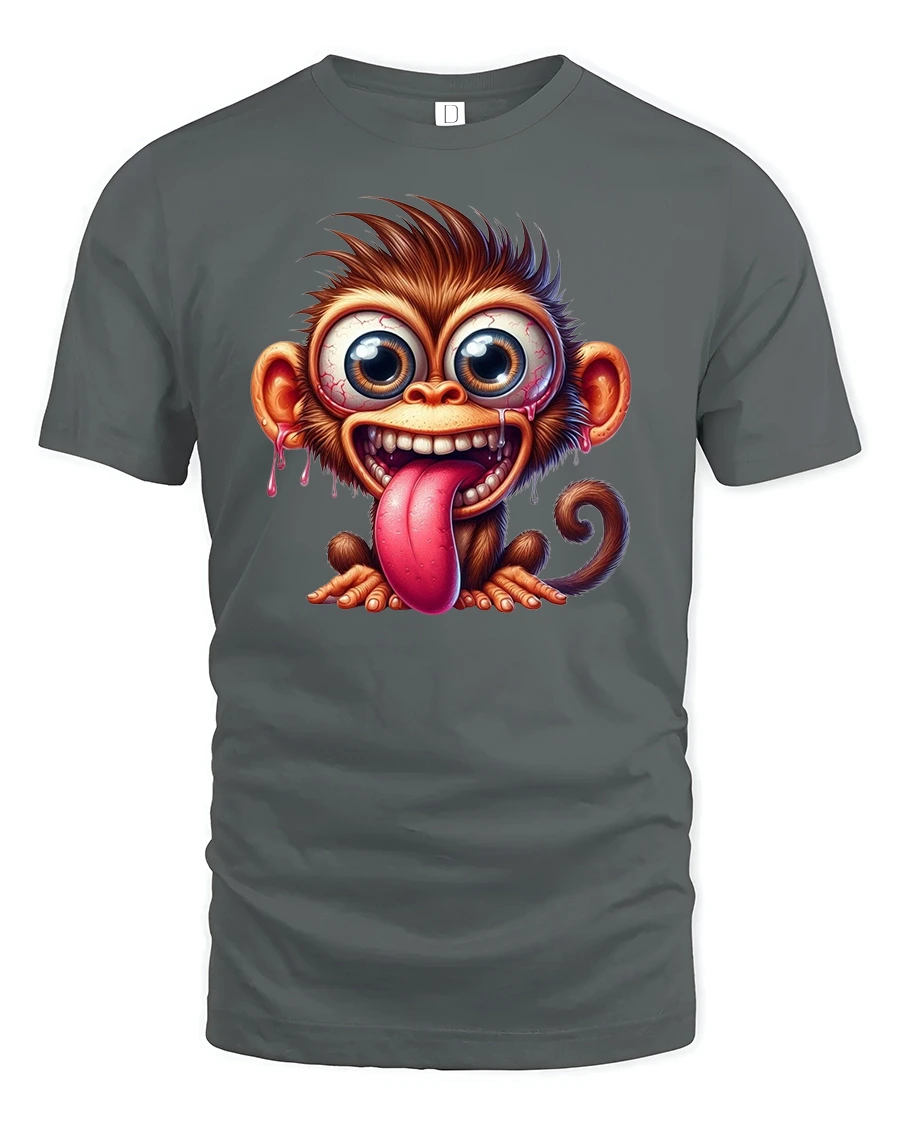 Featuring a wild-eyed monkey with a huge tongue and exaggerated cartoon details, this tee instantly grabs attention and sparks laughter.