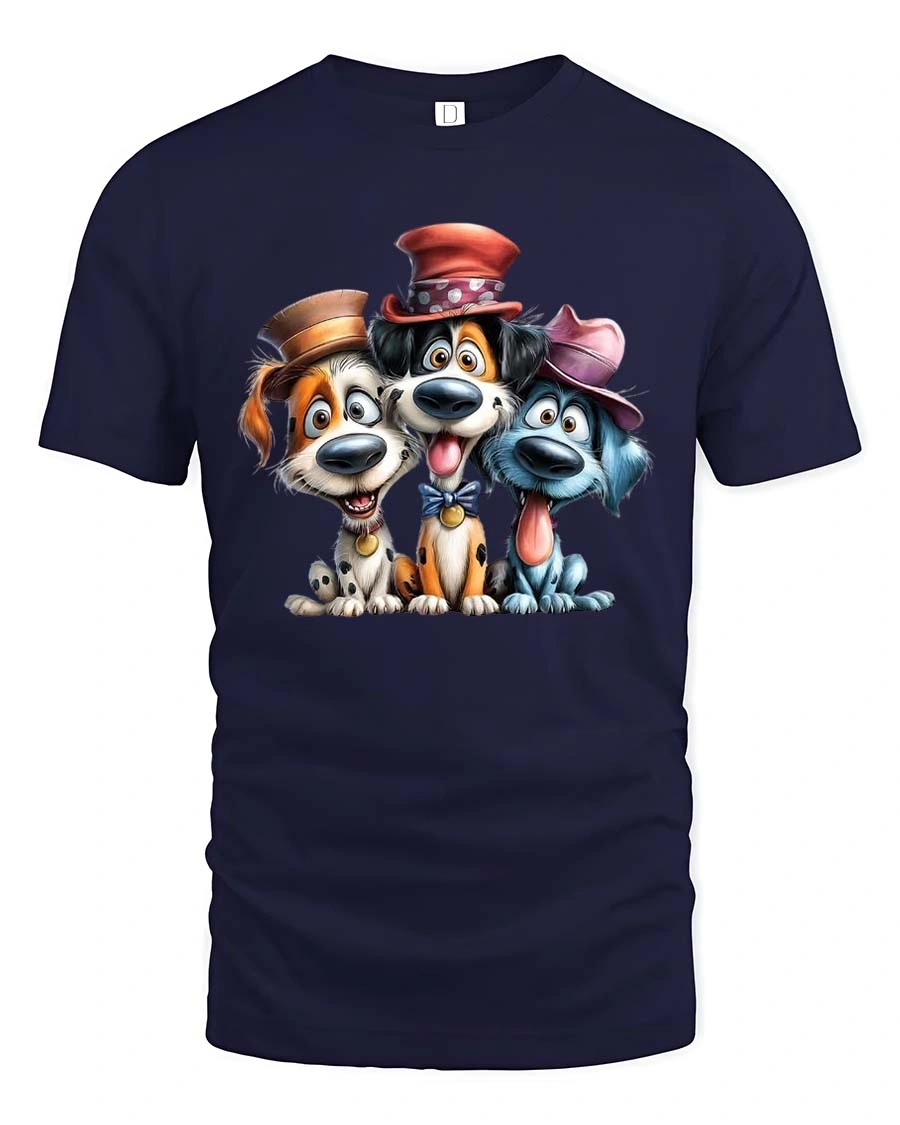Funny Cute Dogs With Hats Graphic T Shirt Cartoon Puppy Tee - navy t-shirt on white background