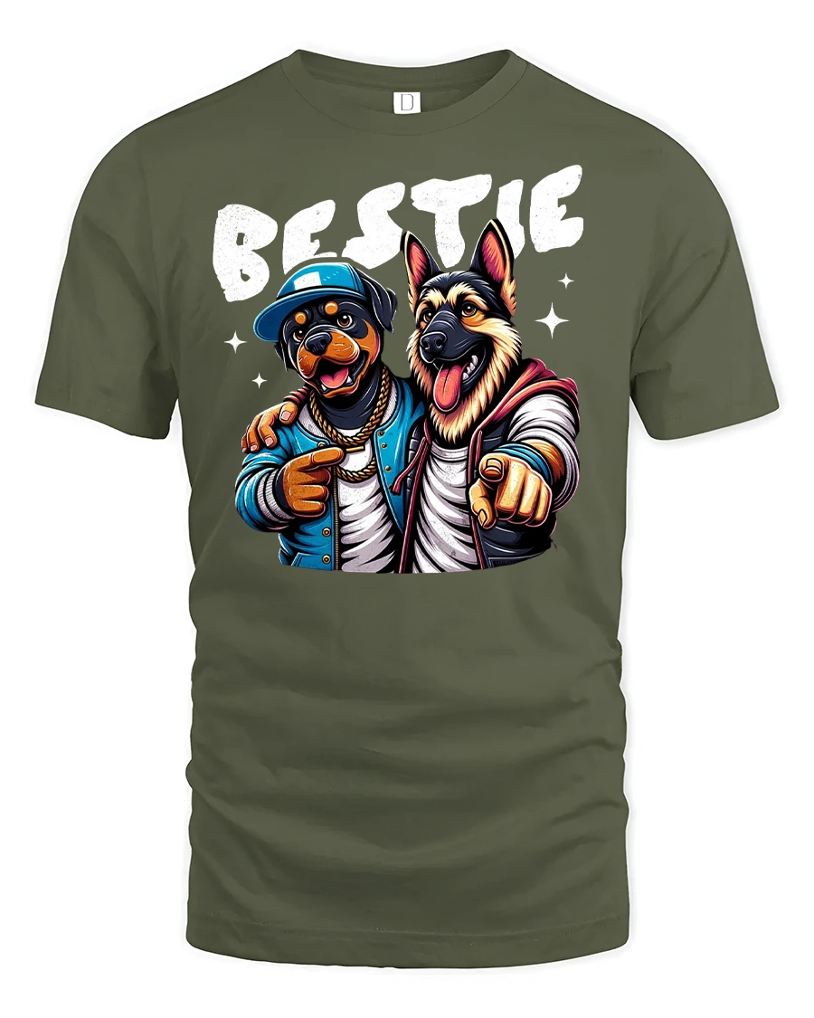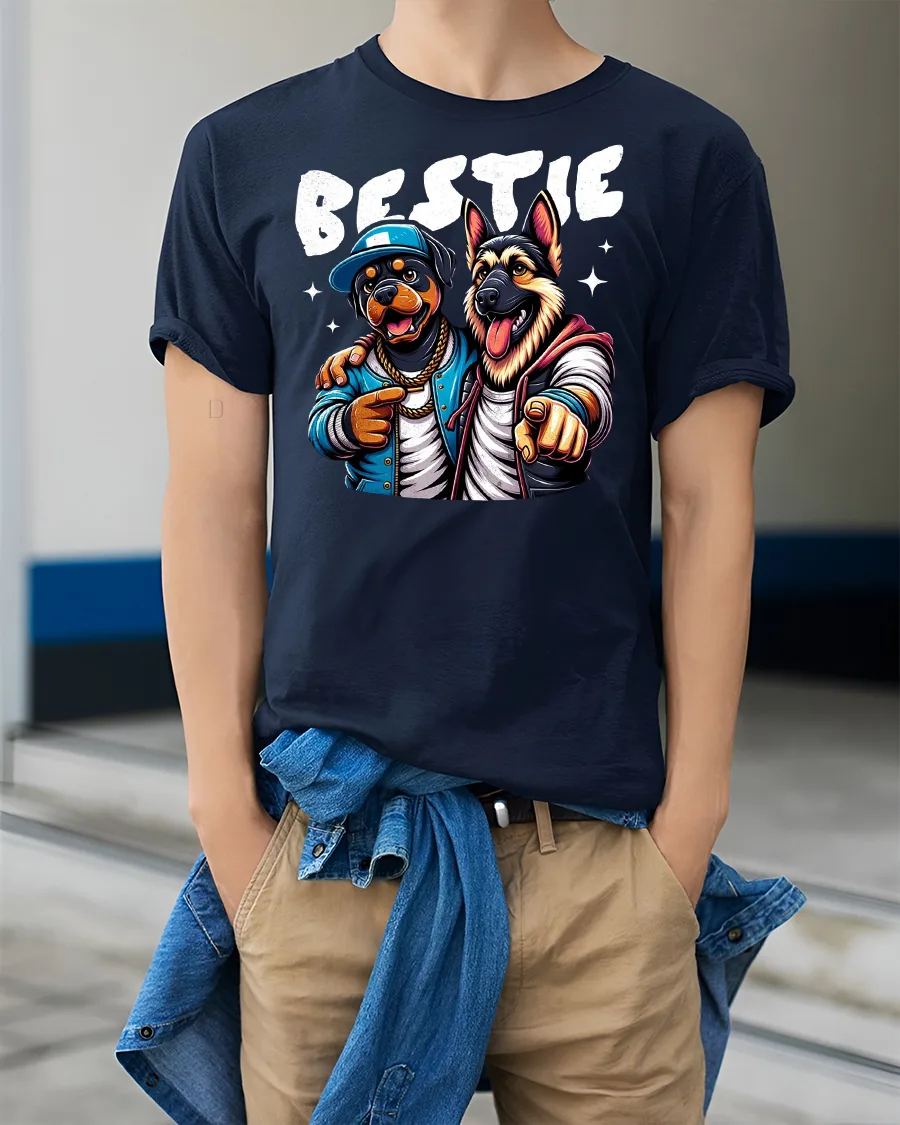 Made with soft, breathable fabric, this dog bestie t-shirt is perfect for casual wear, hangouts with friends, or just lounging around. The high-quality print ensures vibrant colors and lasting durability, so you can enjoy wearing your favorite design again and again. Pair it with jeans, shorts, or joggers for a laid-back streetwear vibe.
