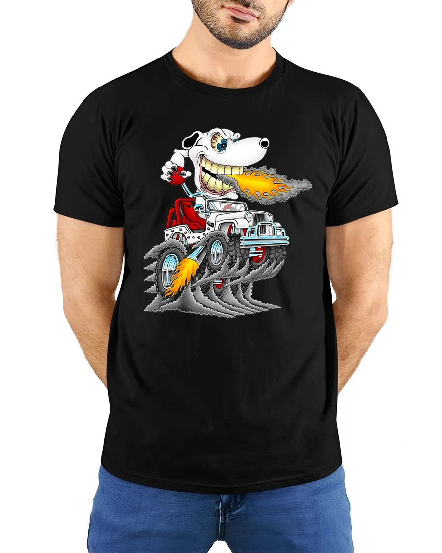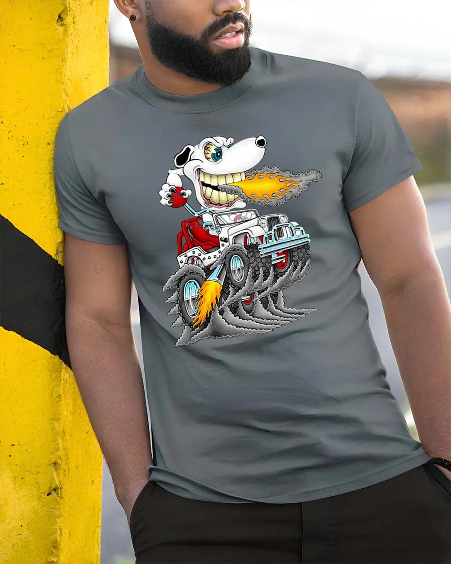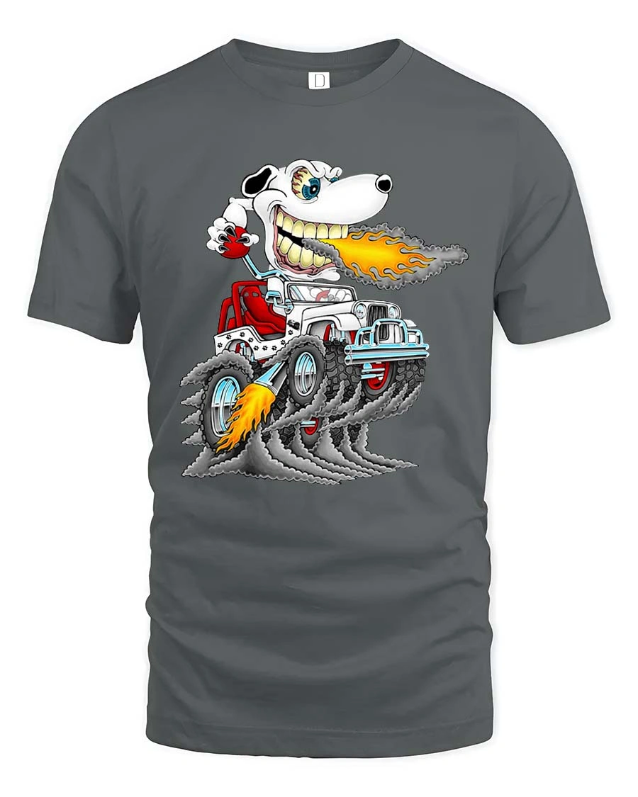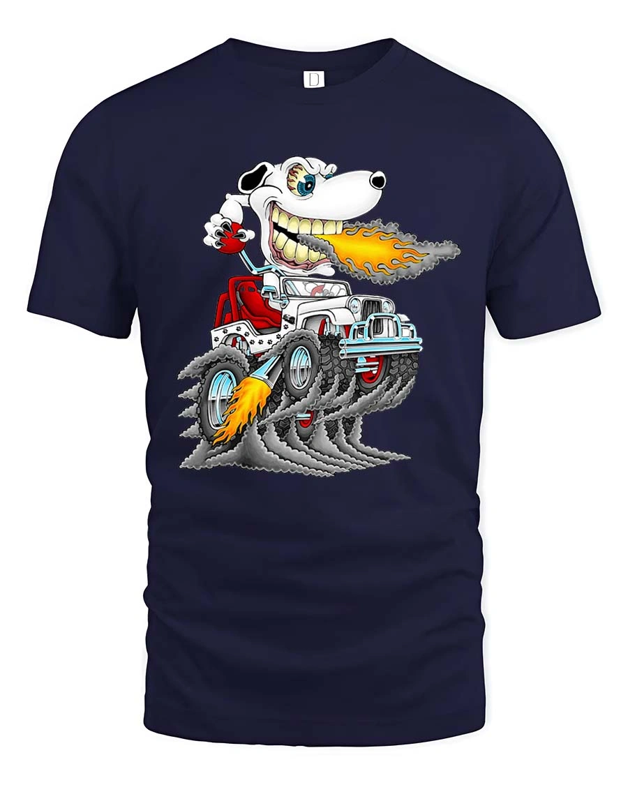Funny Dog Driving Monster Truck T Shirt Fire Breathing Cartoon delivers high energy and humor with a bold and playful design.