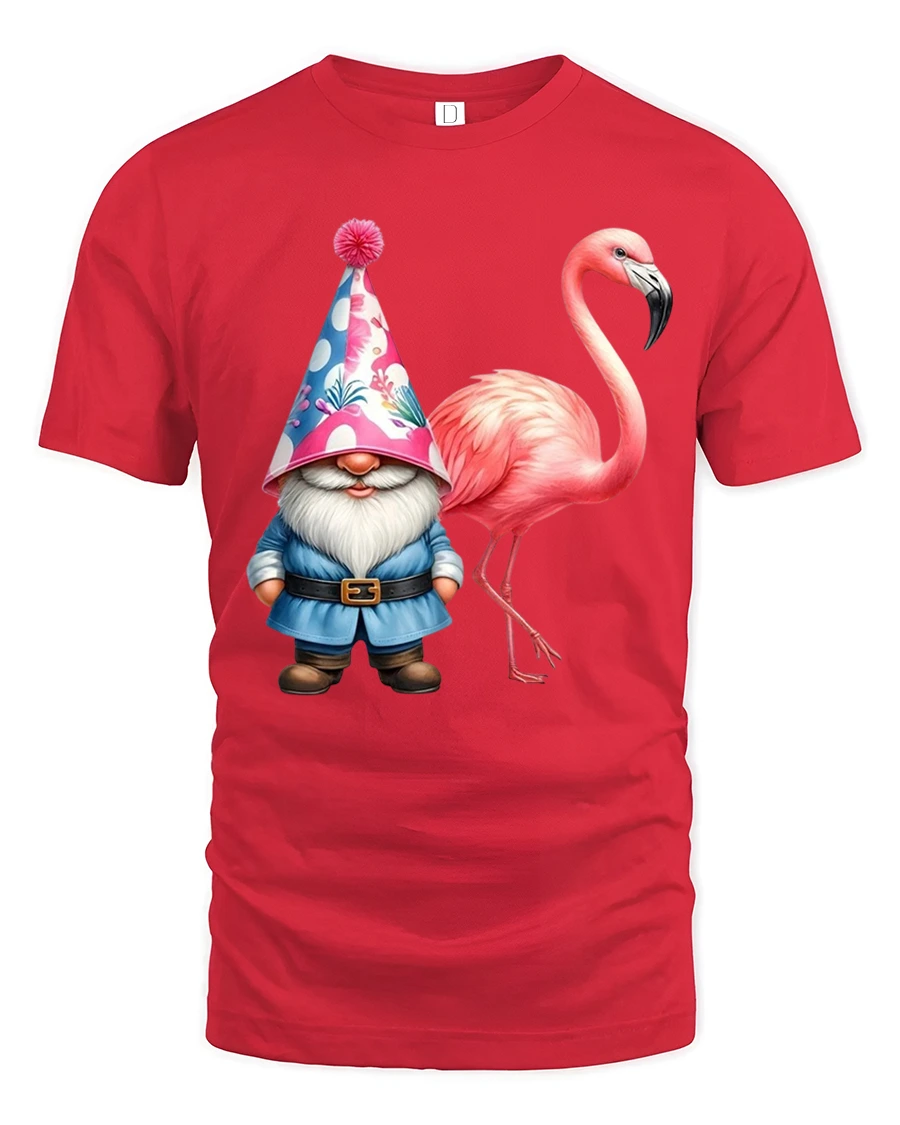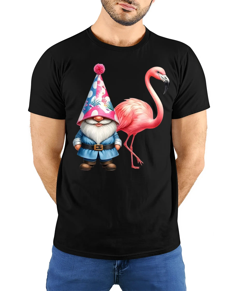 This gnome flamingo tshirt is perfect for casual wear when you want to show off a cheerful and quirky side. The artwork brings together garden fantasy and tropical flair creating a relaxed fun loving mood that works great for weekends vacations or social outings. It feels expressive without being loud making it easy to style with everyday outfits.