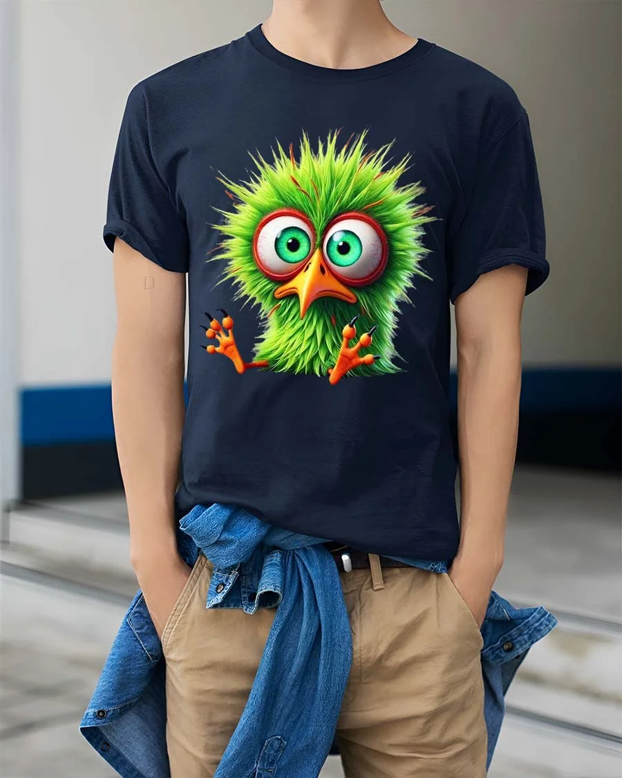 Funny Green Bird Big Eyes Cute Cartoon Graphic T Shirt brings a playful and adorable charm to your everyday look.