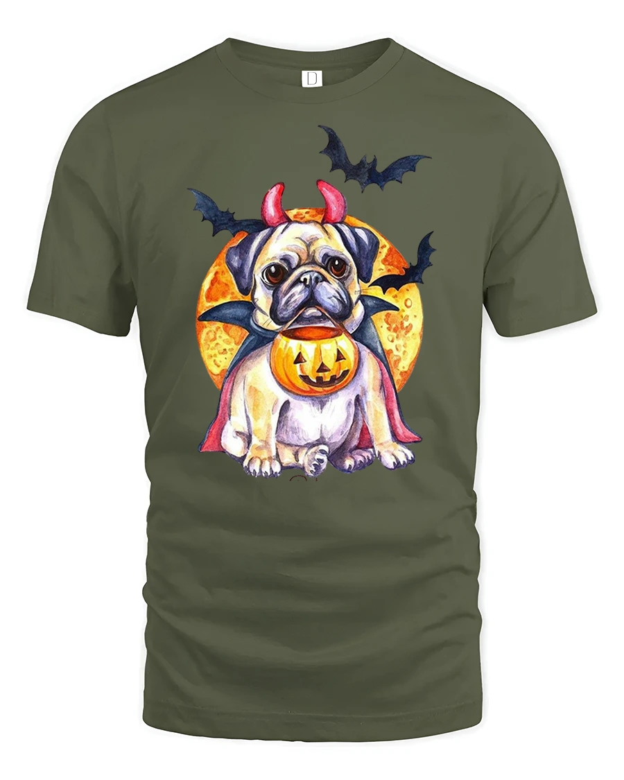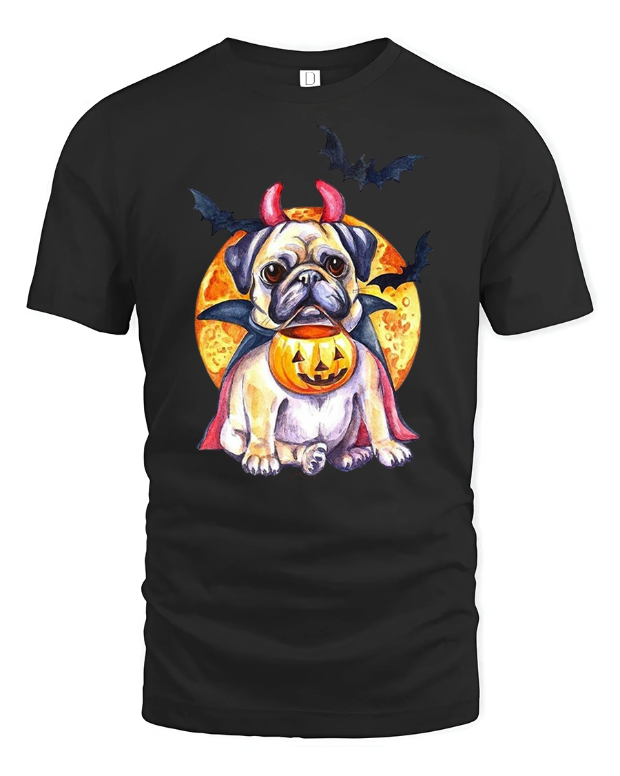 Made from premium soft fabric, this Halloween pug t-shirt delivers comfort while keeping the design bright and eye-catching. The detailed print captures everything from the pug’s sweet expression to the glowing pumpkin and flying bats, ensuring it stays vibrant wash after wash. Whether you’re at a Halloween party, trick-or-treating, or just enjoying the fall season, this tee adds fun to your outfit.
