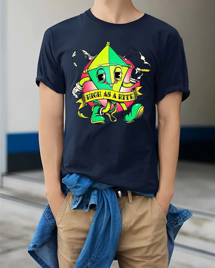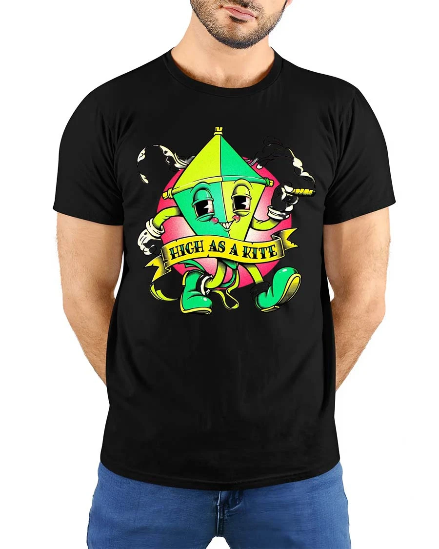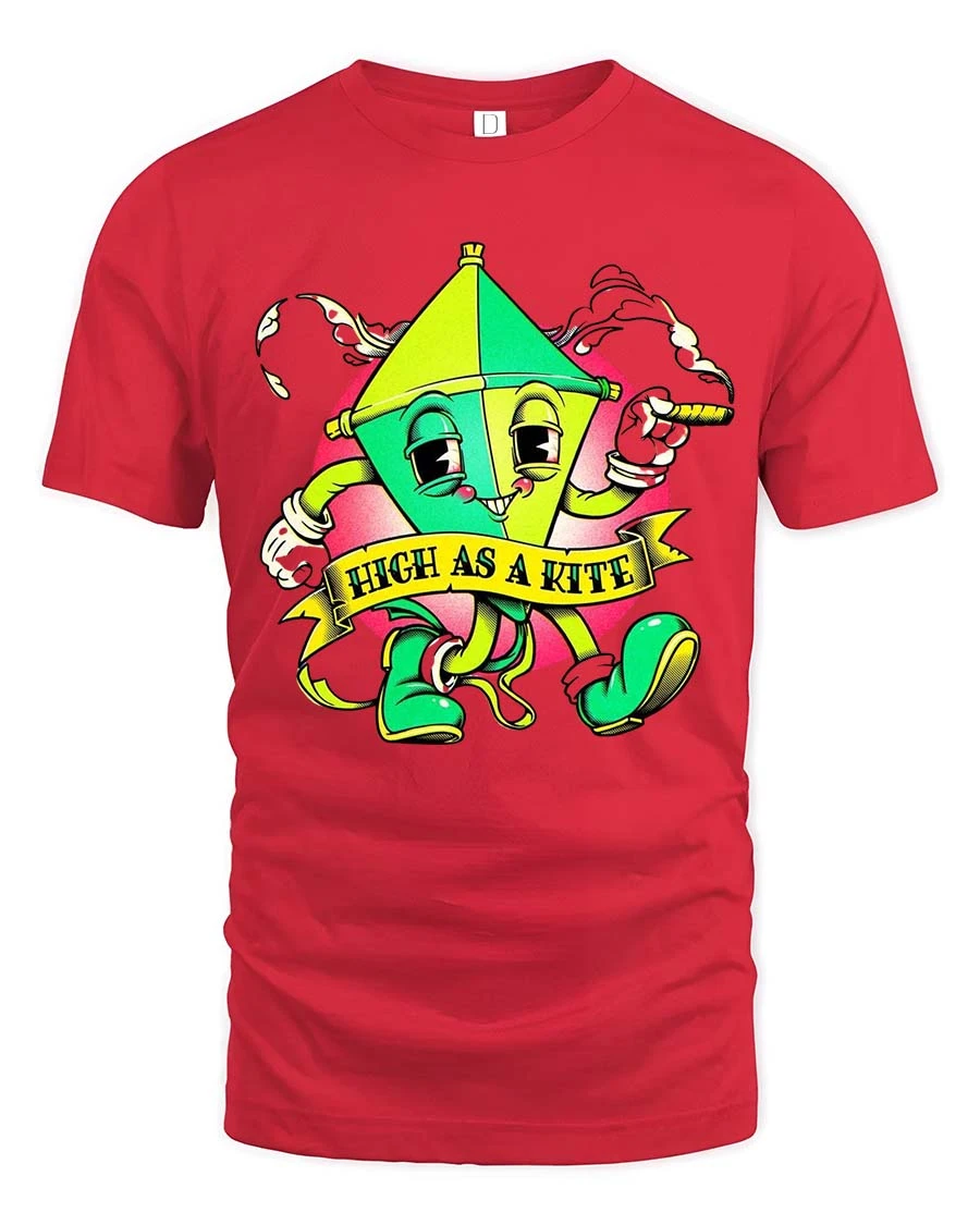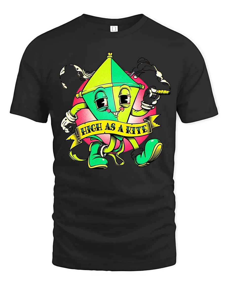 Funny High As A Kite Cartoon T Shirt Cool Chill Graphic Style delivers a playful and humorous design that instantly grabs attention.