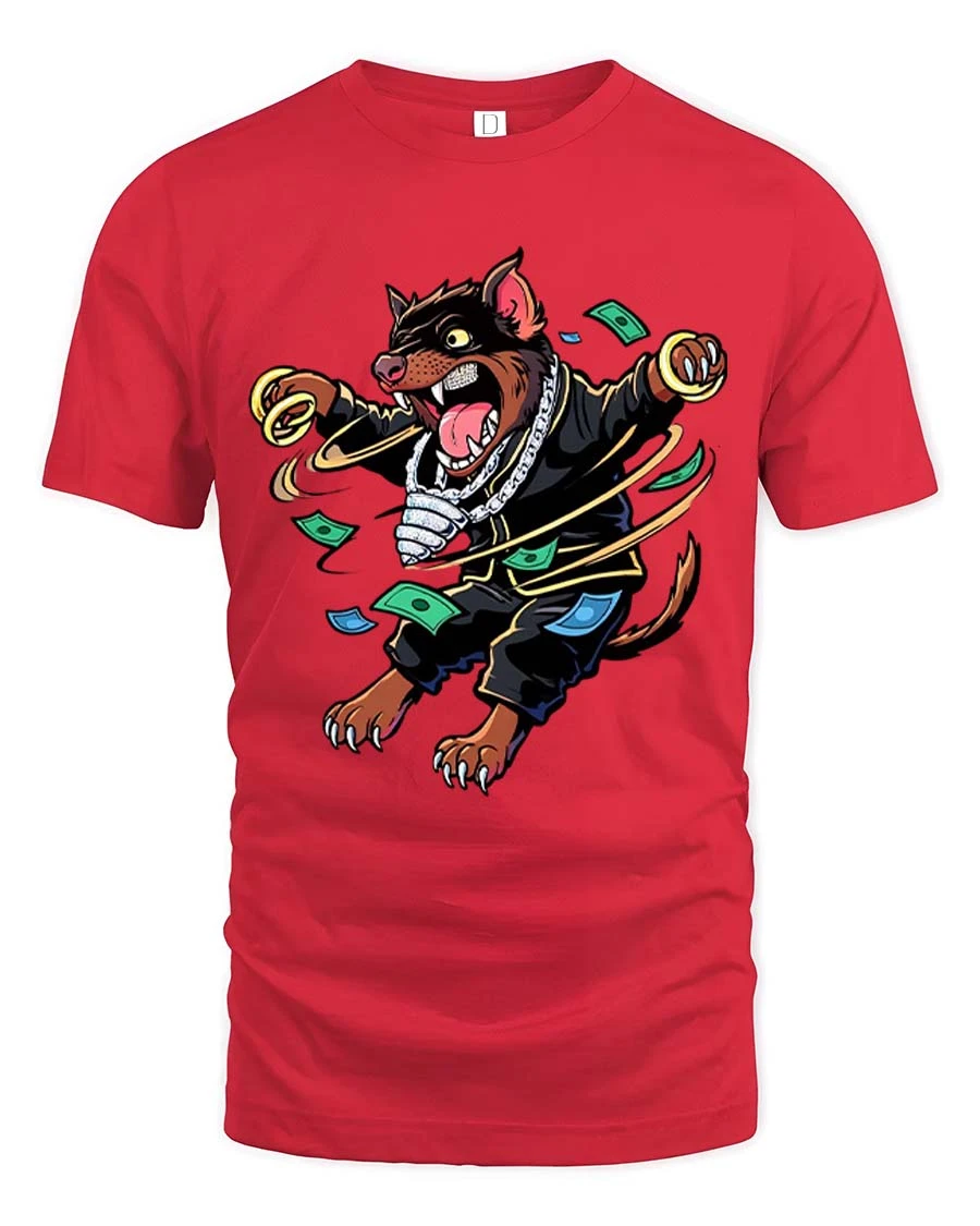 Funny Hustle Dog T Shirt Money Dance Street Style Graphic Tee - red t-shirt on white background