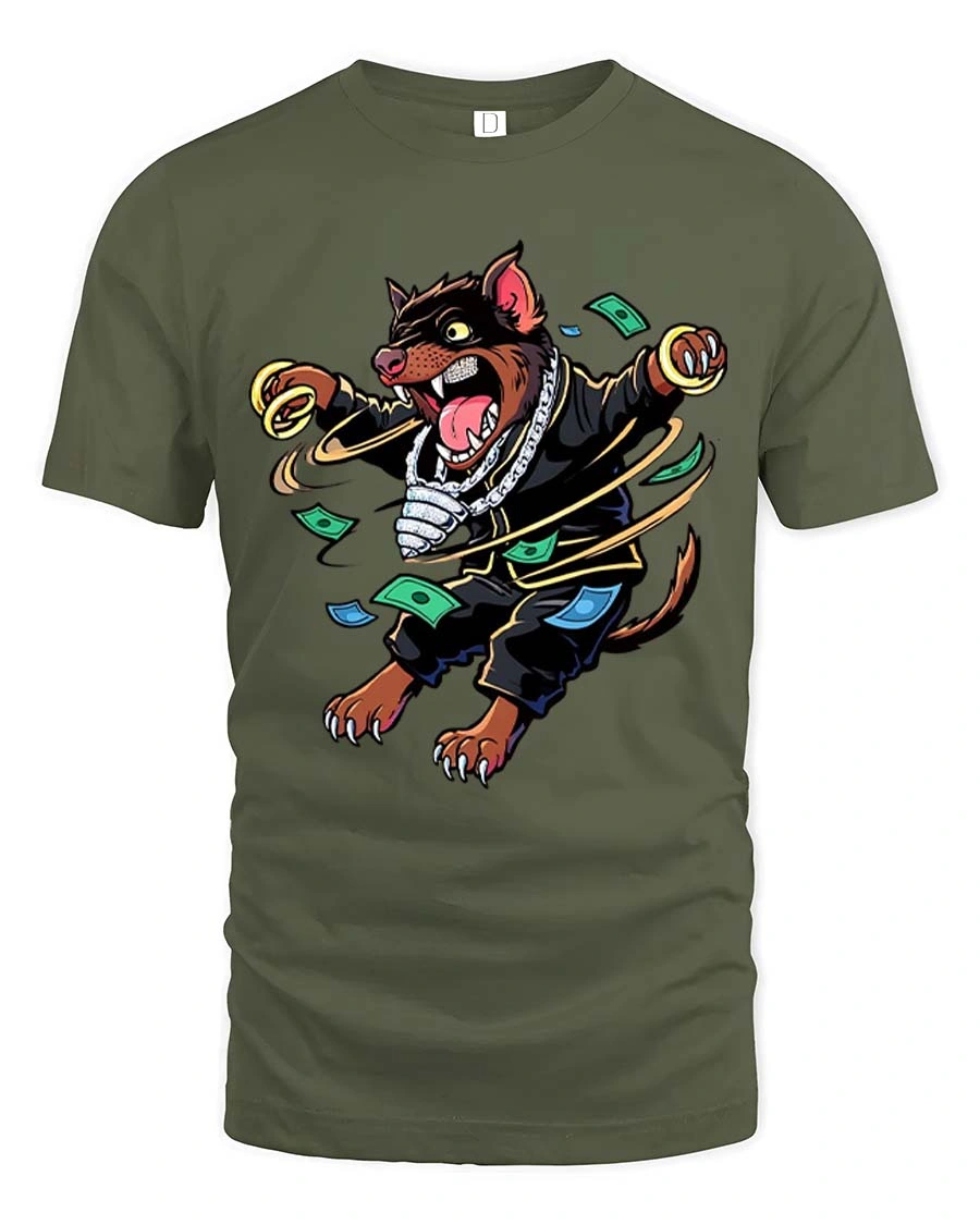 Funny Hustle Dog T Shirt Money Dance Street Style Graphic Tee - military green t-shirt on white background