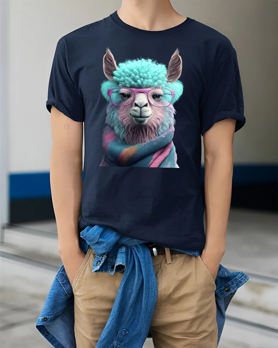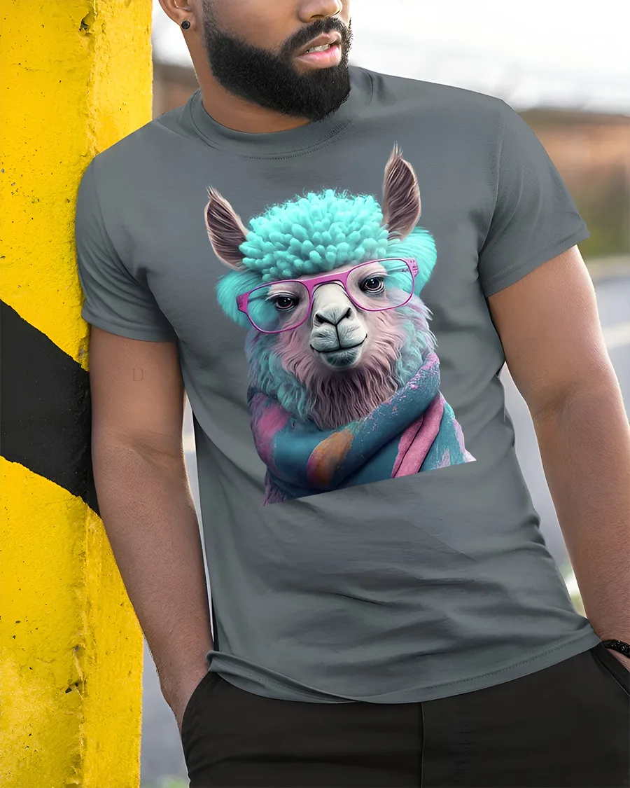 Funny Llama Tee brings bright personality and cozy charm with a stylish llama wearing bold glasses and a colorful wrapped scarf. The detailed artwork features soft pastel shades, fluffy textures and playful expression that make this design instantly lovable. It blends humor, comfort and modern style, making it ideal for anyone who enjoys cute animal graphics with a fashionable twist.