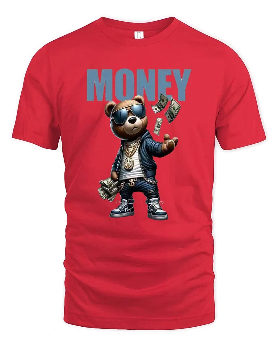 The Funny Money Bear Graphic T Shirt Hip Hop Cash Cartoon Tee combines humor, street culture inspiration, and vibrant graphic design.