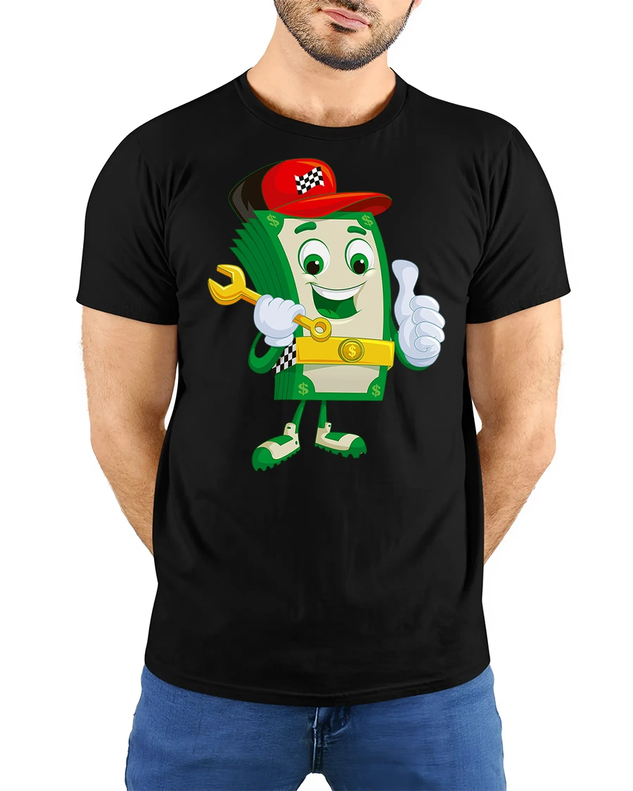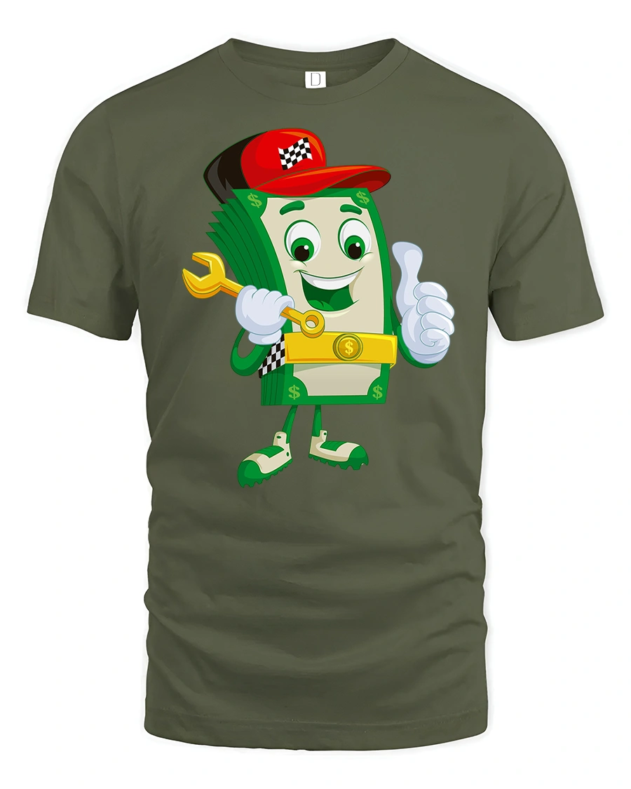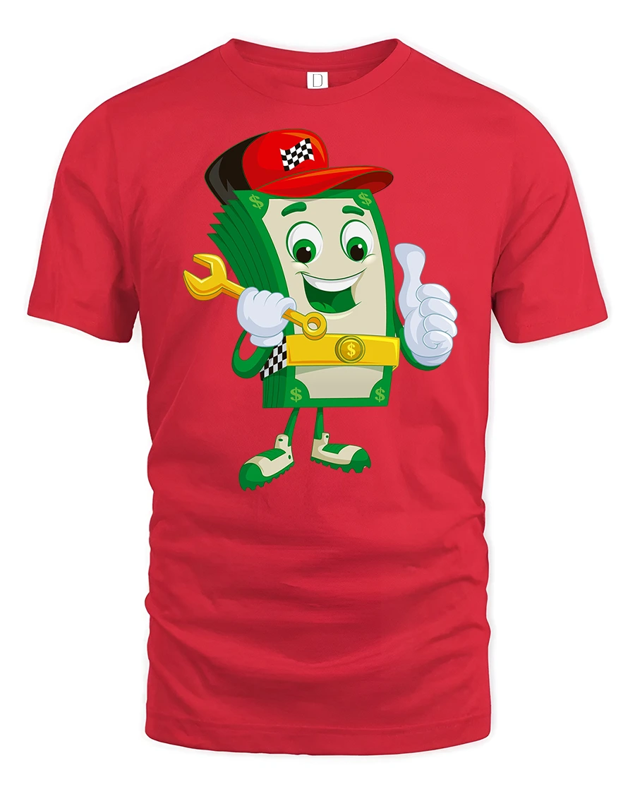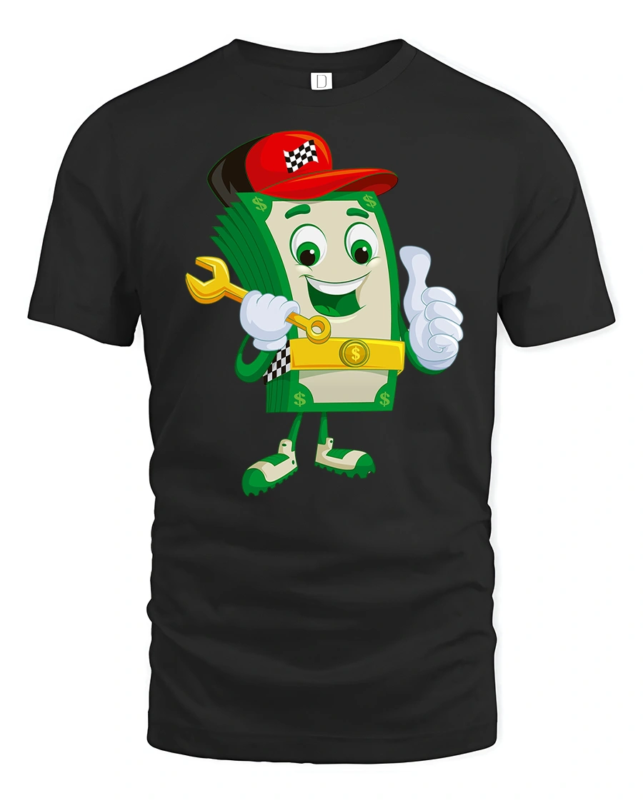 Bring humor and personality to your wardrobe with the Funny Money Cartoon Dollar Bill Character T-Shirt. Featuring a happy dollar bill mascot holding a wrench, giving a thumbs up, and rocking a red cap, this playful tee combines fun style with a lighthearted vibe. It’s perfect for money lovers, entrepreneurs, or anyone who enjoys quirky graphic shirts.