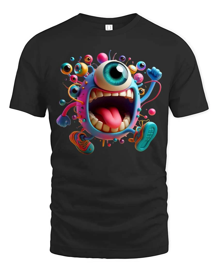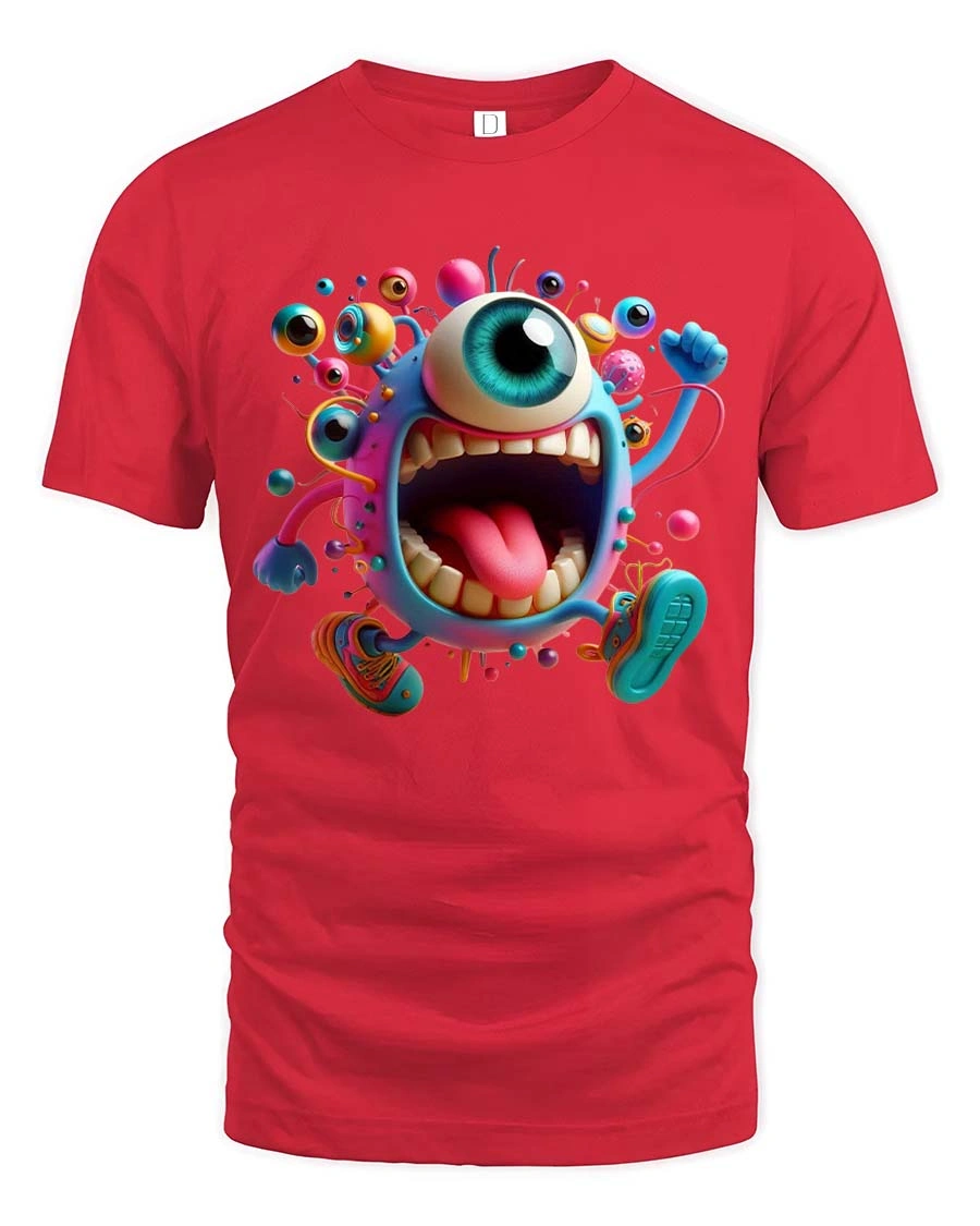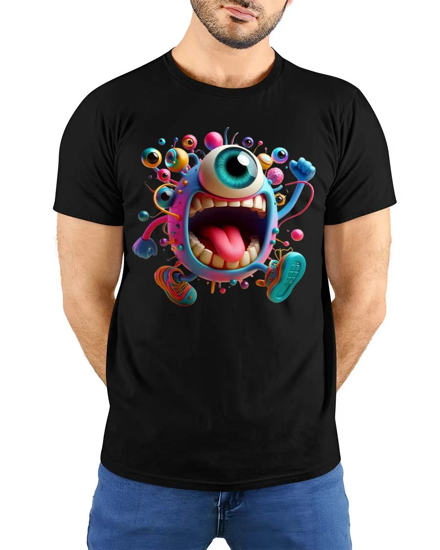 Funny One Eyed Monster Cartoon Running Graphic T Shirt delivers bold humor and playful energy in a vibrant eye catching design.