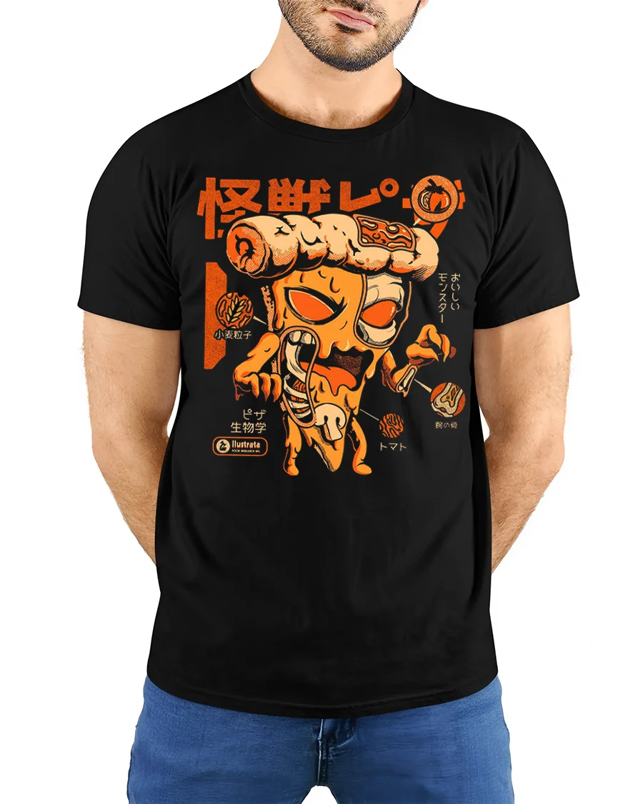 Funny Pizza Monster Graphic Tee With Retro Japanese Style Art brings together humor, creativity, and bold retro design in a way that instantly grabs attention. Featuring a quirky pizza creature styled like a vintage Japanese monster illustration, this tee blends bright orange tones with playful character details to create a fun and nostalgic aesthetic. The Japanese text elements add a unique cultural flair, making the artwork stand out with personality and style.