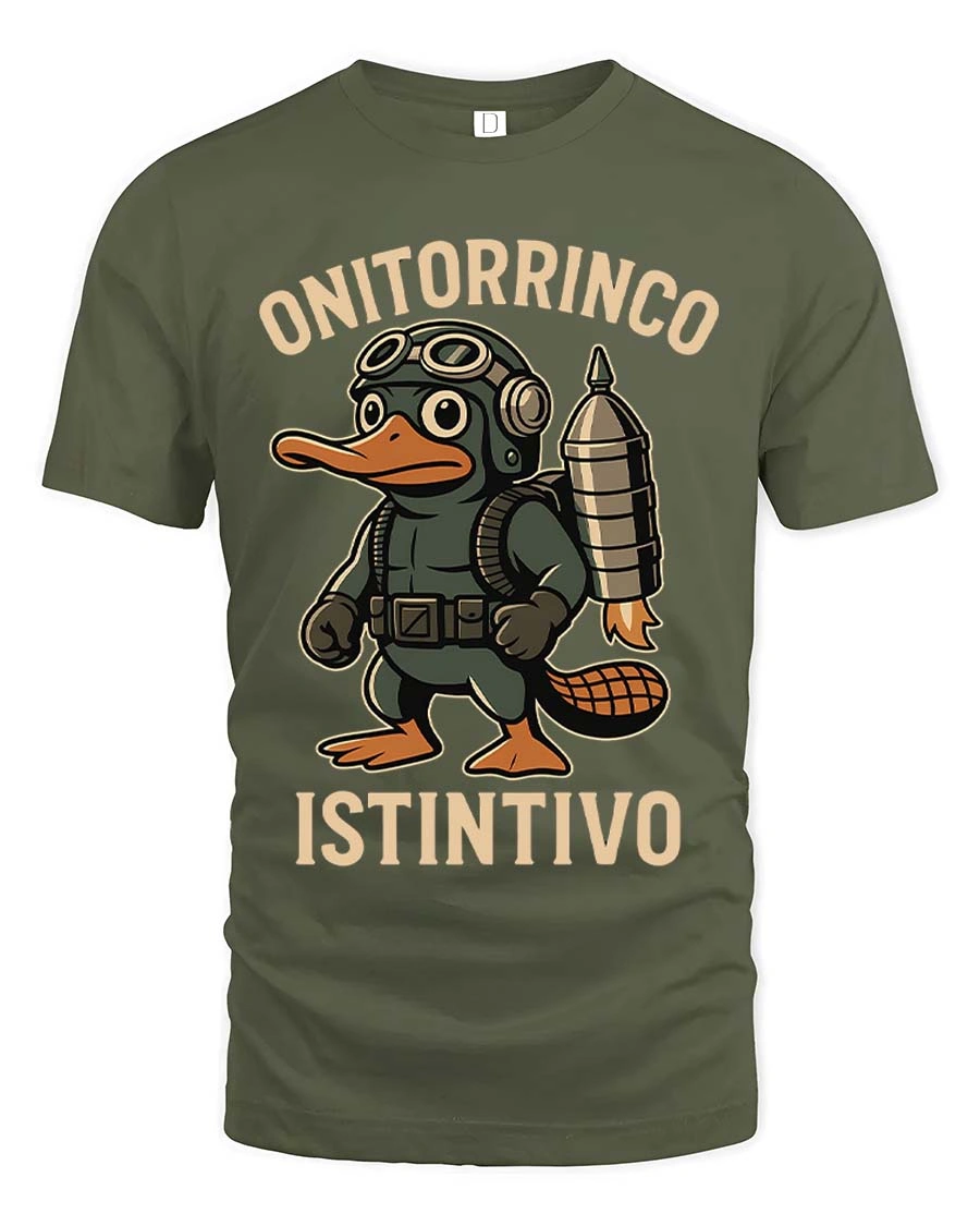Funny Platypus Aviator T Shirt Onitorrinco Instintivo Tee - military green t-shirt on white background