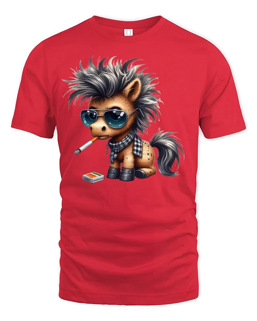Unisex in style and perfect for US buyers who enjoy quirky fashion, this punk pony t-shirt also makes a great gift for friends who love funny animal prints or retro-inspired graphics. Add some rebellious charm to your wardrobe and let this smoking pony bring the rockstar vibe to your everyday look.